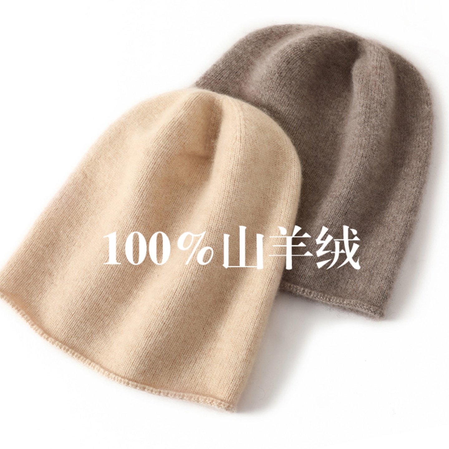 源自内蒙古100%羊绒堆堆领帽男女通用卷边针织帽冷帽cos风遮耳帽