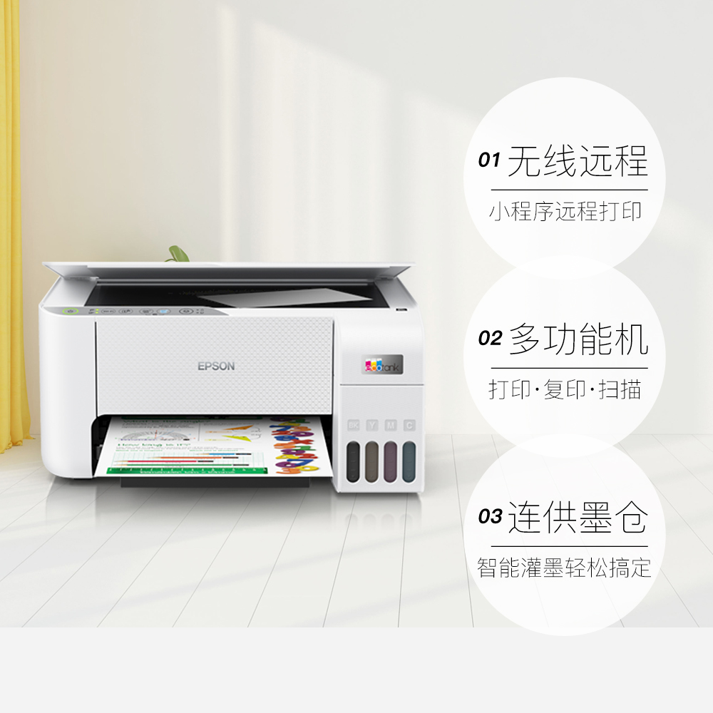【自营】【政府补贴20%】爱普生打印机L3251/L3253家用小型连供手机无线WIFI学生照片办公墨仓彩色一体机