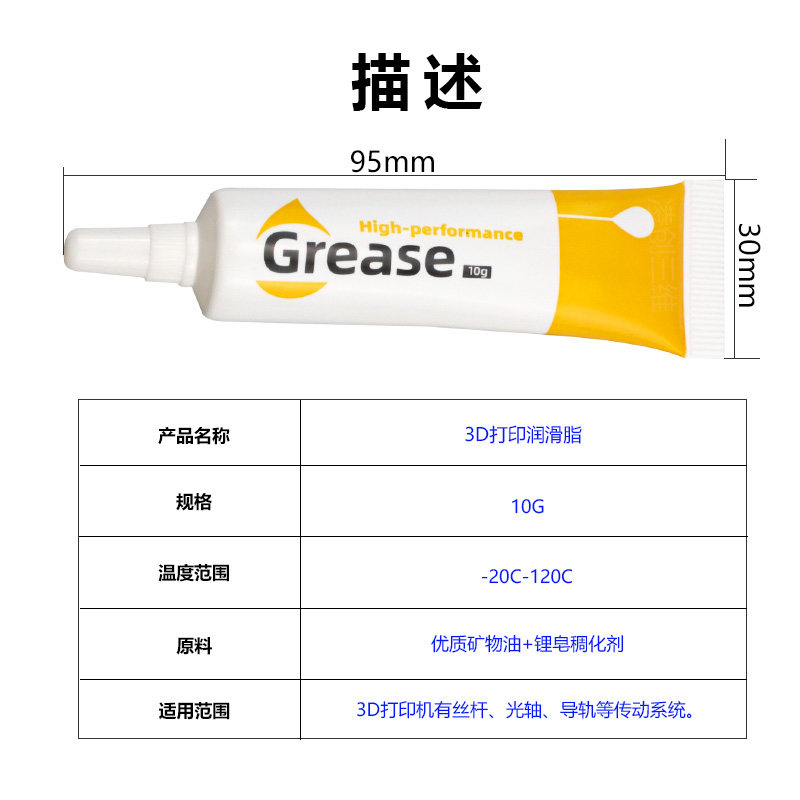 3D打印机润滑油滑动轴承直线导轨润滑脂防锈抗氧化环保润滑油黄油