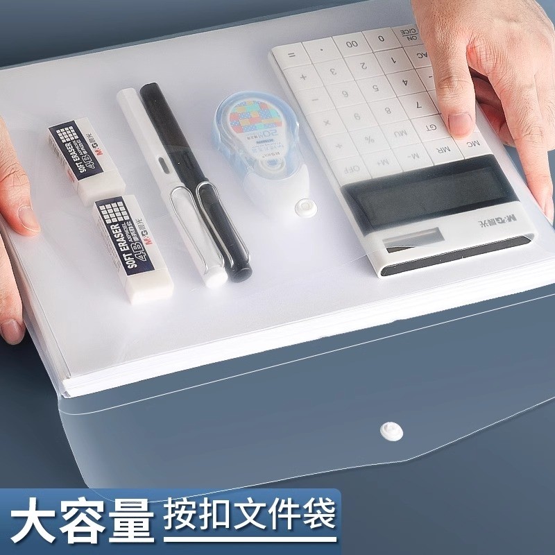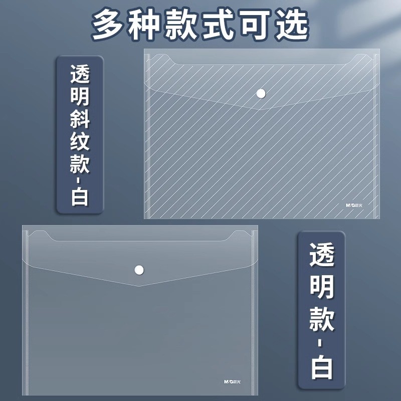 晨光文具A4透明防水文件袋加厚斜纹纽扣收纳袋小学生试卷归纳袋耐用大容量办公专用档案票据袋分类按扣
