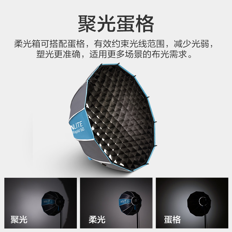 NANLITE南光40/60/90/120cm摄影灯FM卡口保荣卡口快装深口深抛八角四角柔光箱蛋格格栅顶灯柔光附件