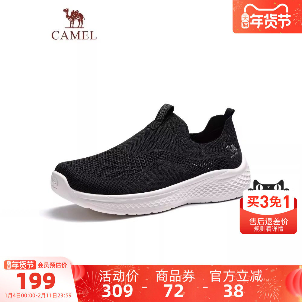 骆驼男鞋2025夏季新款轻便透气健步爸爸鞋一脚蹬网面运动休闲鞋男