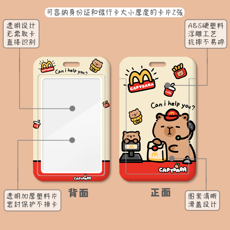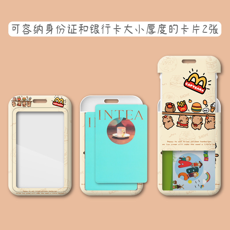 水豚售货员卡通可爱创意学生校园卡套带伸缩扣挂绳工牌防丢公交饭卡银行卡身份证门禁校园挂脖胸牌证件保护套