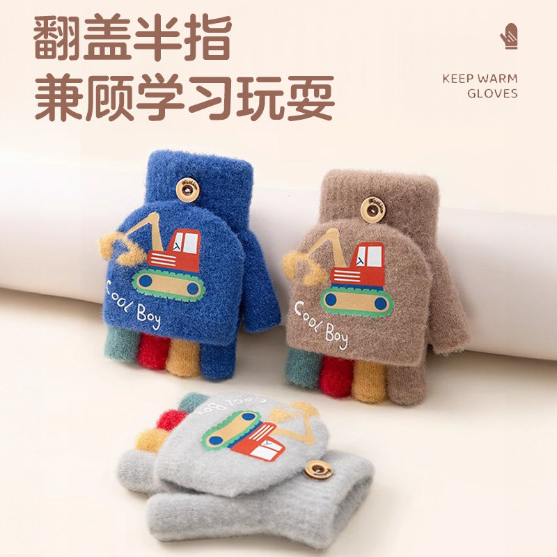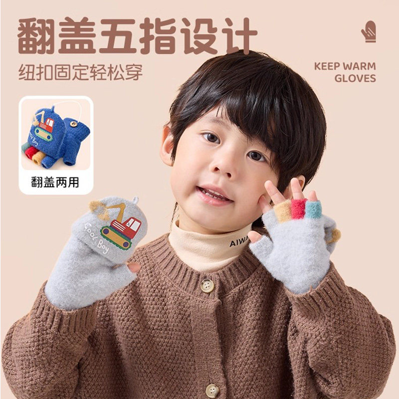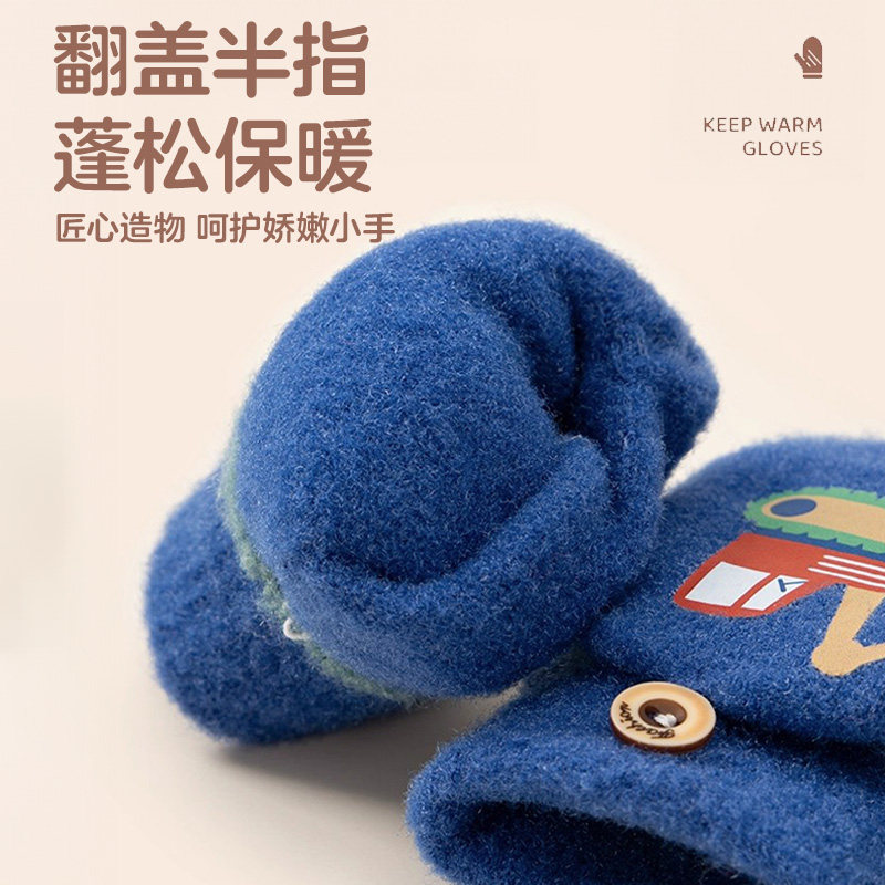 宝宝手套儿童冬季保暖加绒男孩男童小童2-5岁半指翻盖冬天五指