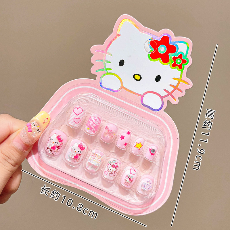 库洛米儿童可爱指甲贴小女孩贴美甲贴立体玩具贴纸防水果冻胶可拆卸女童卡通短款穿戴甲小学生显白甜美美甲片