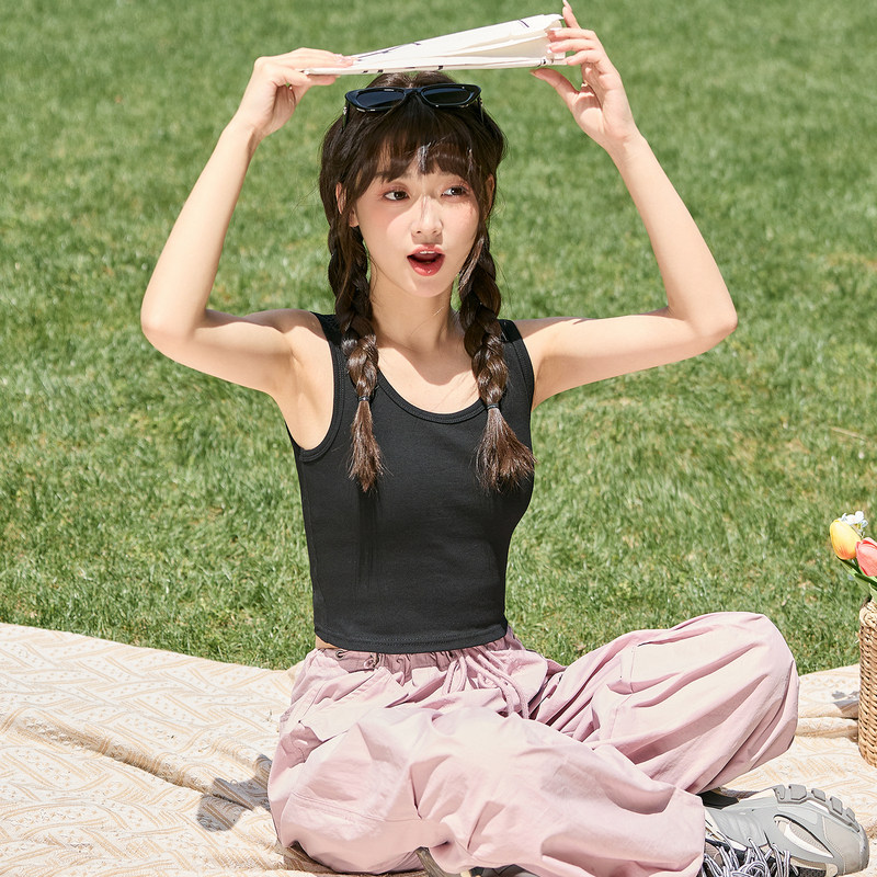 唐狮背心女白色打底衫夏季新款吊带外穿无袖纯色针织短款上衣