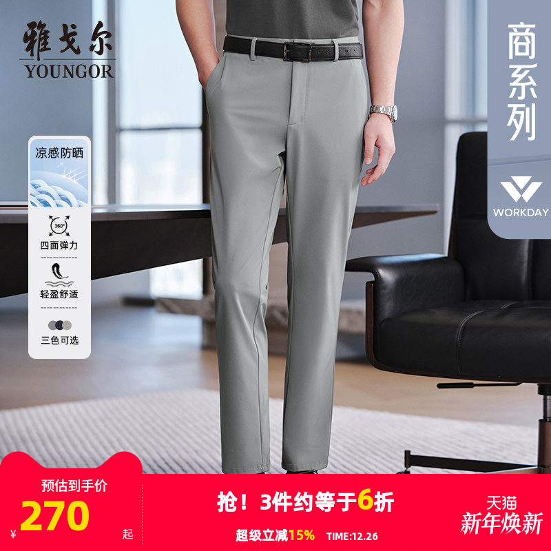 【四面弹凉感】雅戈尔夏季新款男士冰丝裤商务防晒直筒轻薄休闲裤
