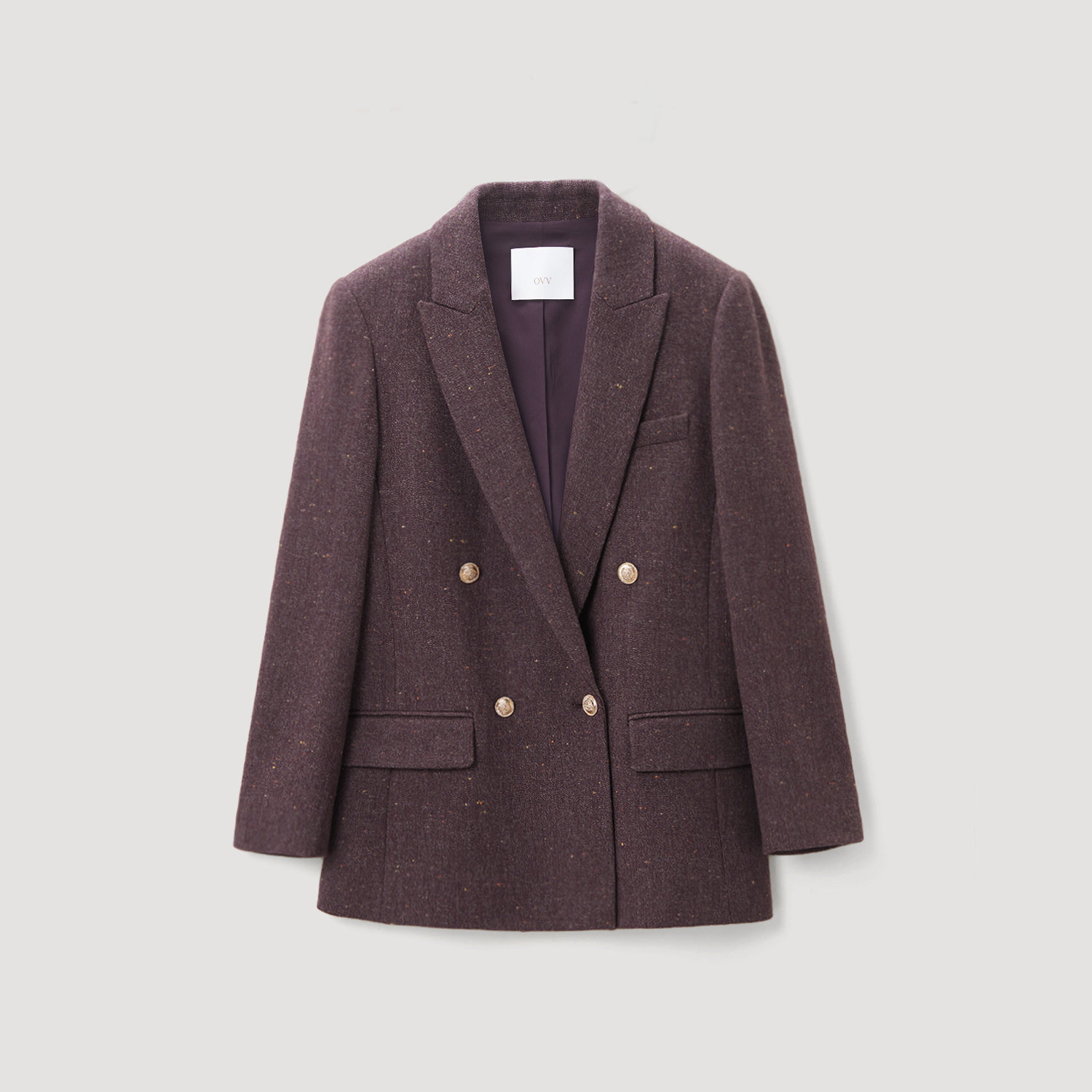 OVVOutlet秋冬新款女装日本进口彩点花呢羊毛双排扣套装西服