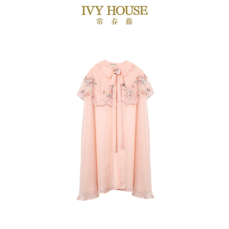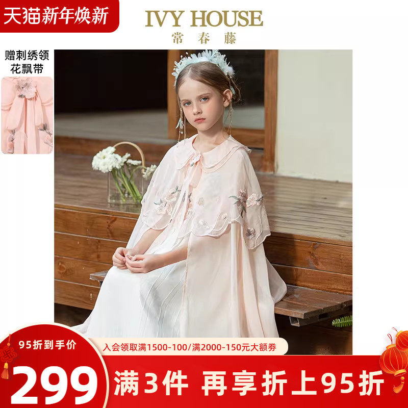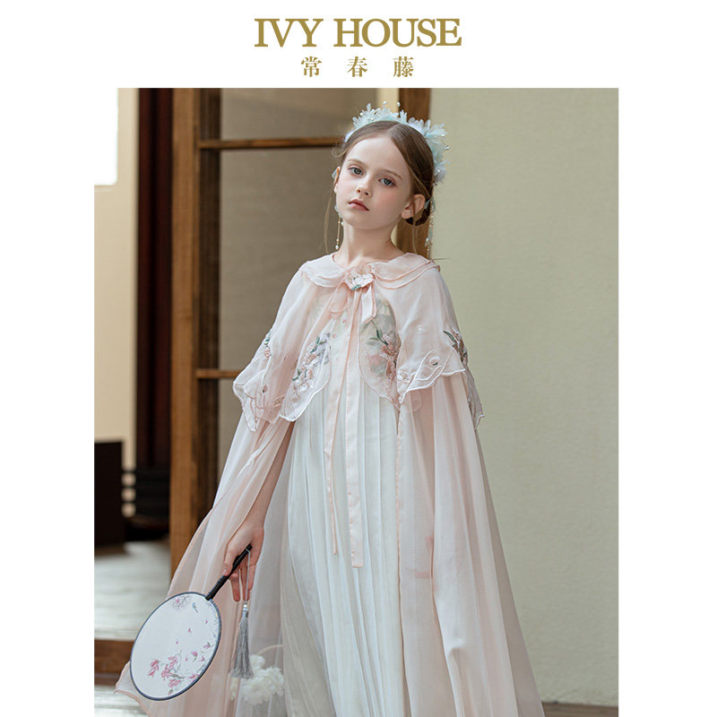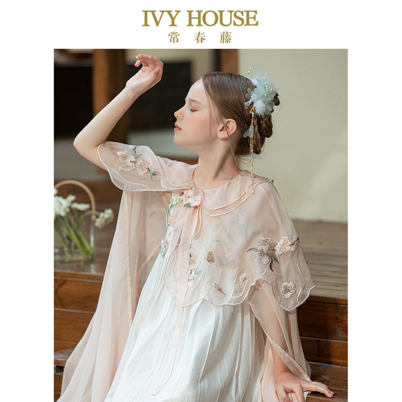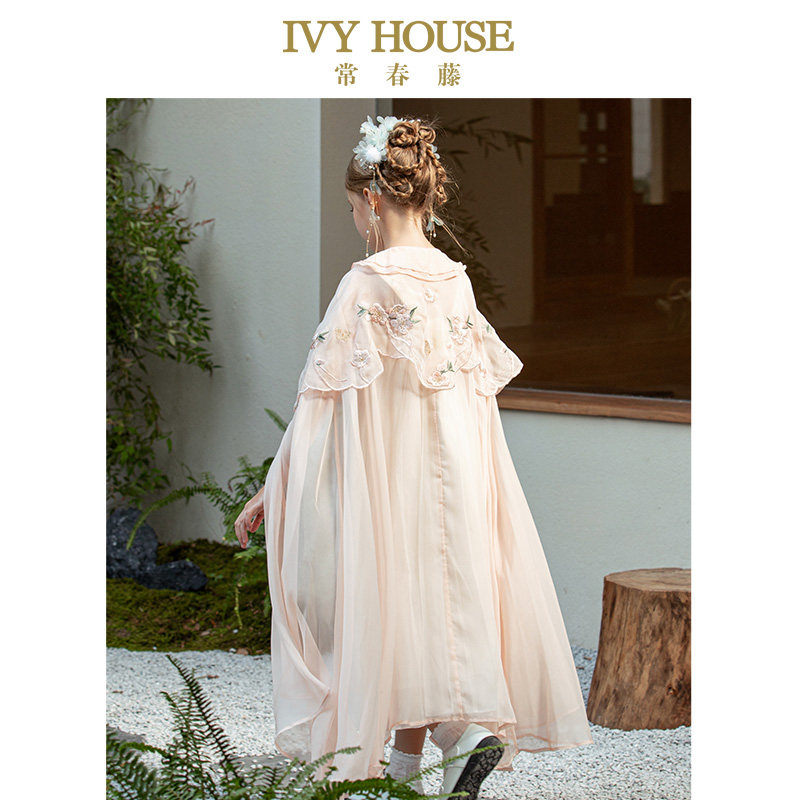 IVY HOUSE常春藤儿童装女童春轻盈雪纺传统国风绣花斗篷汉服披肩
