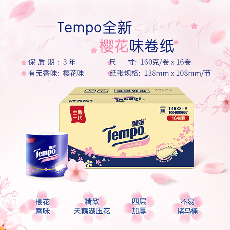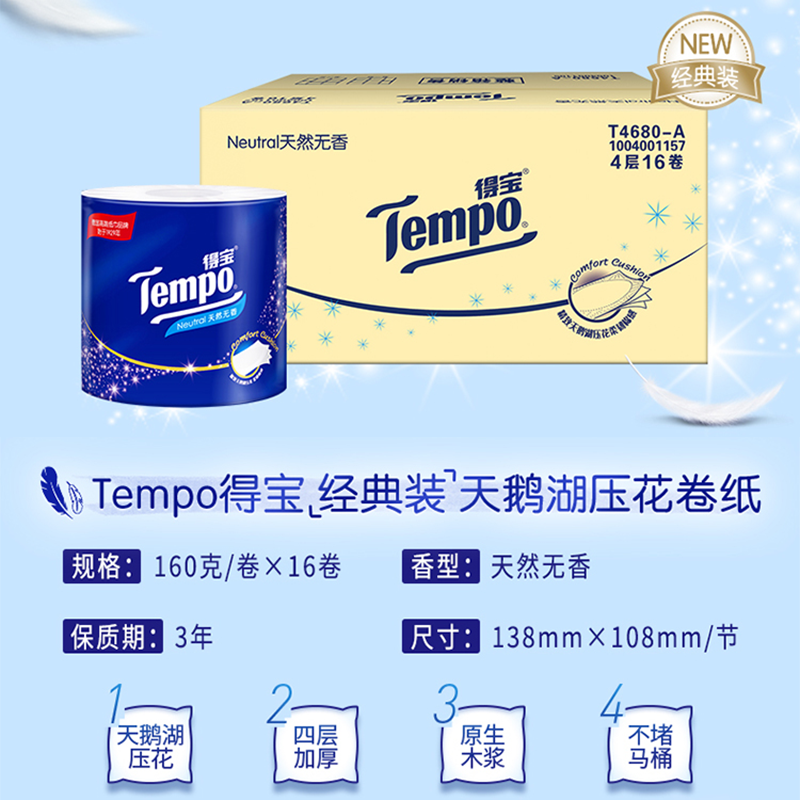【下拉享优惠】得宝卷纸无香有芯压花4层厕纸卫生纸160g*32卷