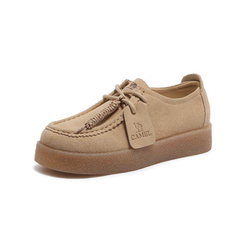 骆驼女鞋2025春季新款英伦风平底单鞋舒适通勤牛津鞋袋鼠鞋豆豆鞋