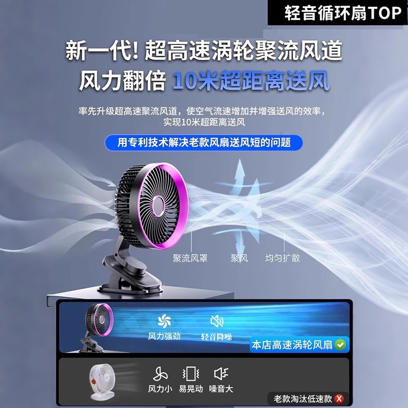 2025新款静音夹式小风扇usb桌面小型学生宿舍床上充电款超长续航迷你便携式随身办公室桌上车载婴儿电风扇