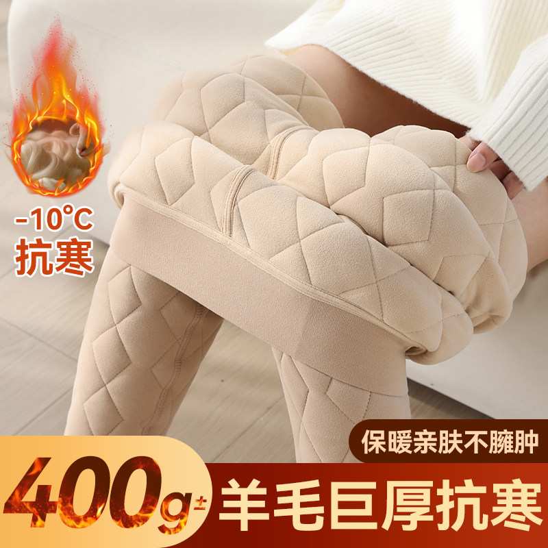 特厚羊毛裤打底裤女秋冬加绒加厚外穿一体裤东北大码保暖棉裤羊绒