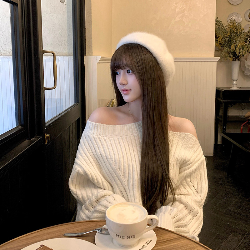 毛绒绒兔毛白色贝雷帽子女2025新款冬季氛围感大头围显脸小画家帽