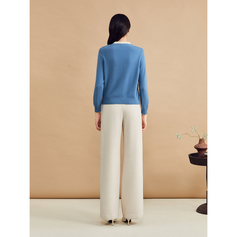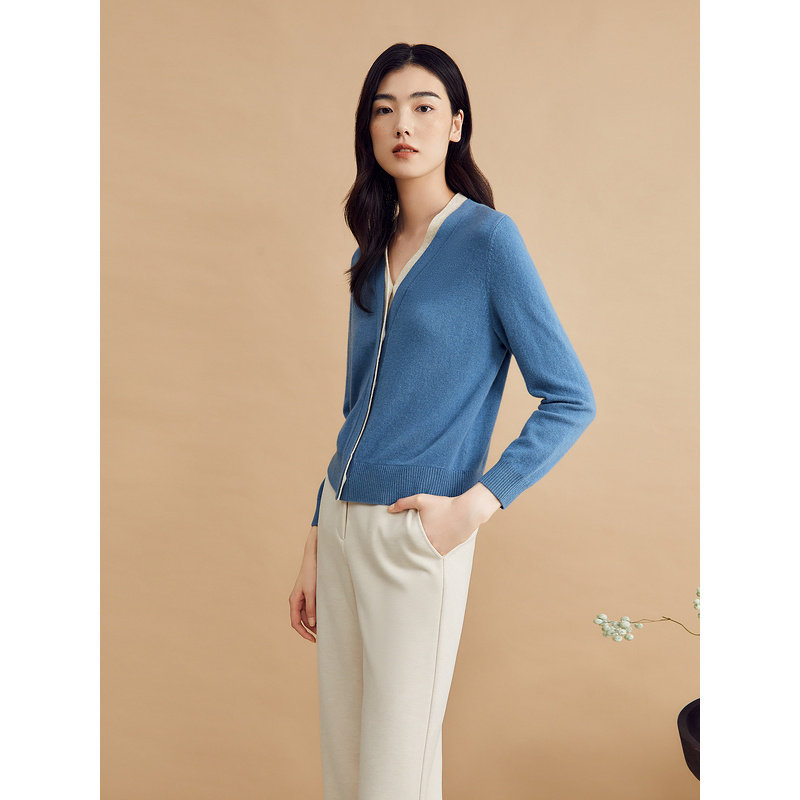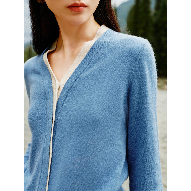 【美丽诺羊毛+山羊绒】YINER音儿冬季撞色V领毛针织衫
