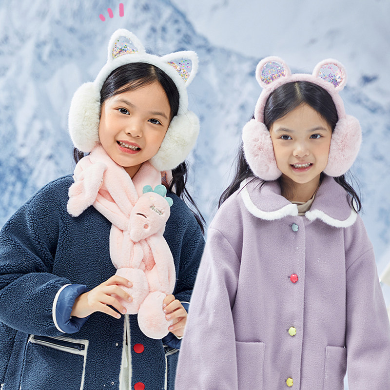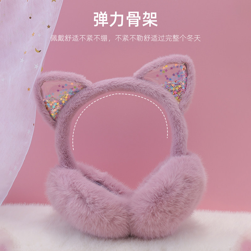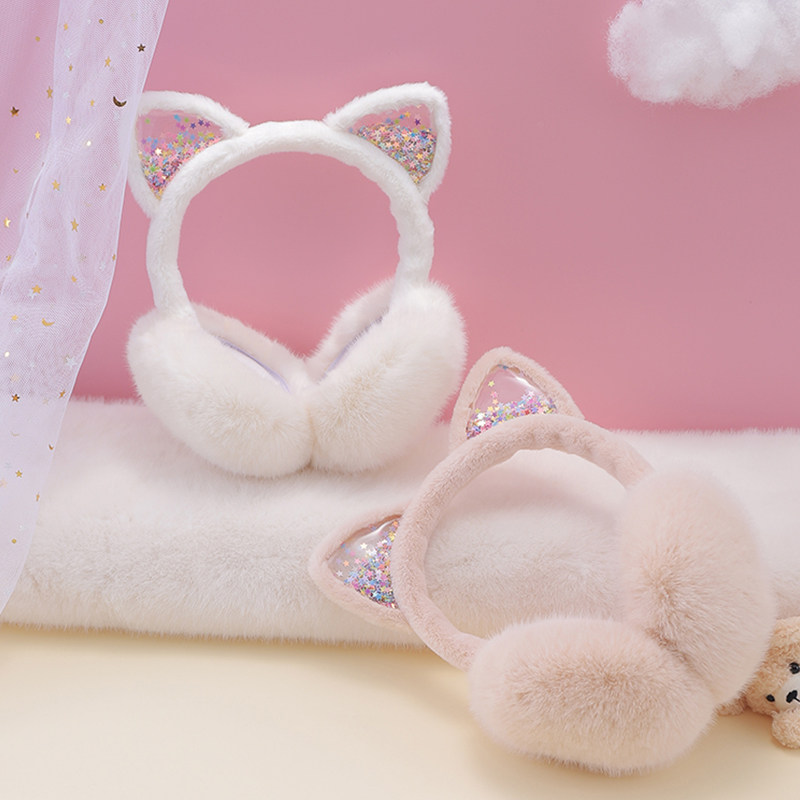 可爱小猫耳罩儿童冬季保暖加绒可折叠仿兔毛加厚女童护耳暖捂耳套