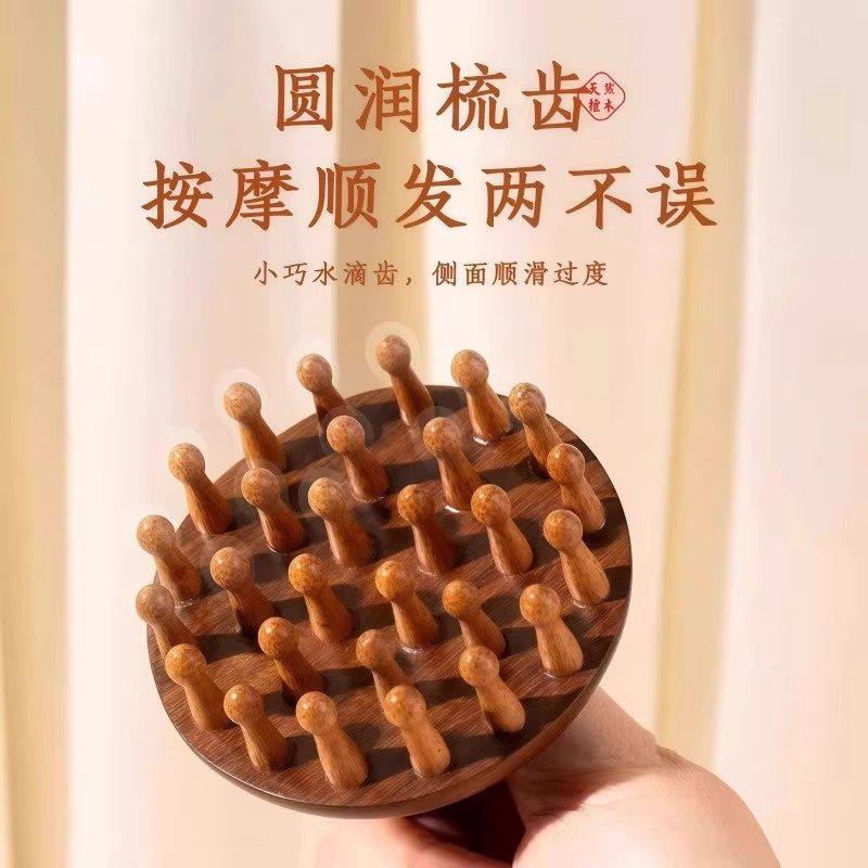 高端檀木圆盘按摩梳头部头皮经络梳毛囊疏通神器养发保健梳子通用