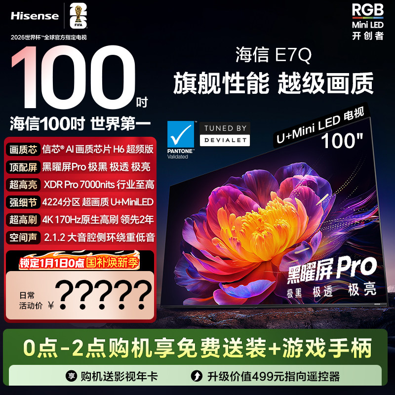 海信电视E7Q 100吋 信芯芯片H6 黑曜屏Pro 7000nits世界杯电视机