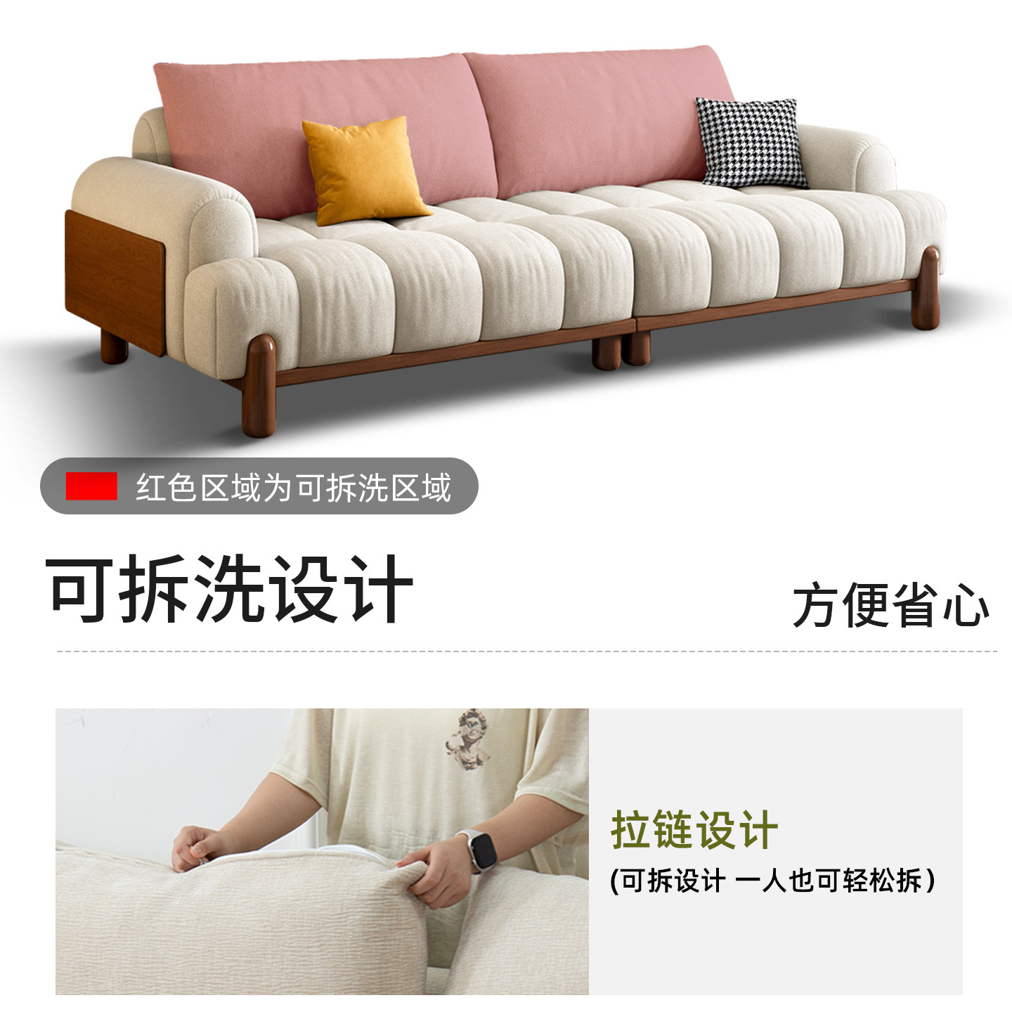 2025佛山新款原木风沙发棉花糖白蜡木客厅小户型可拆洗布艺沙发