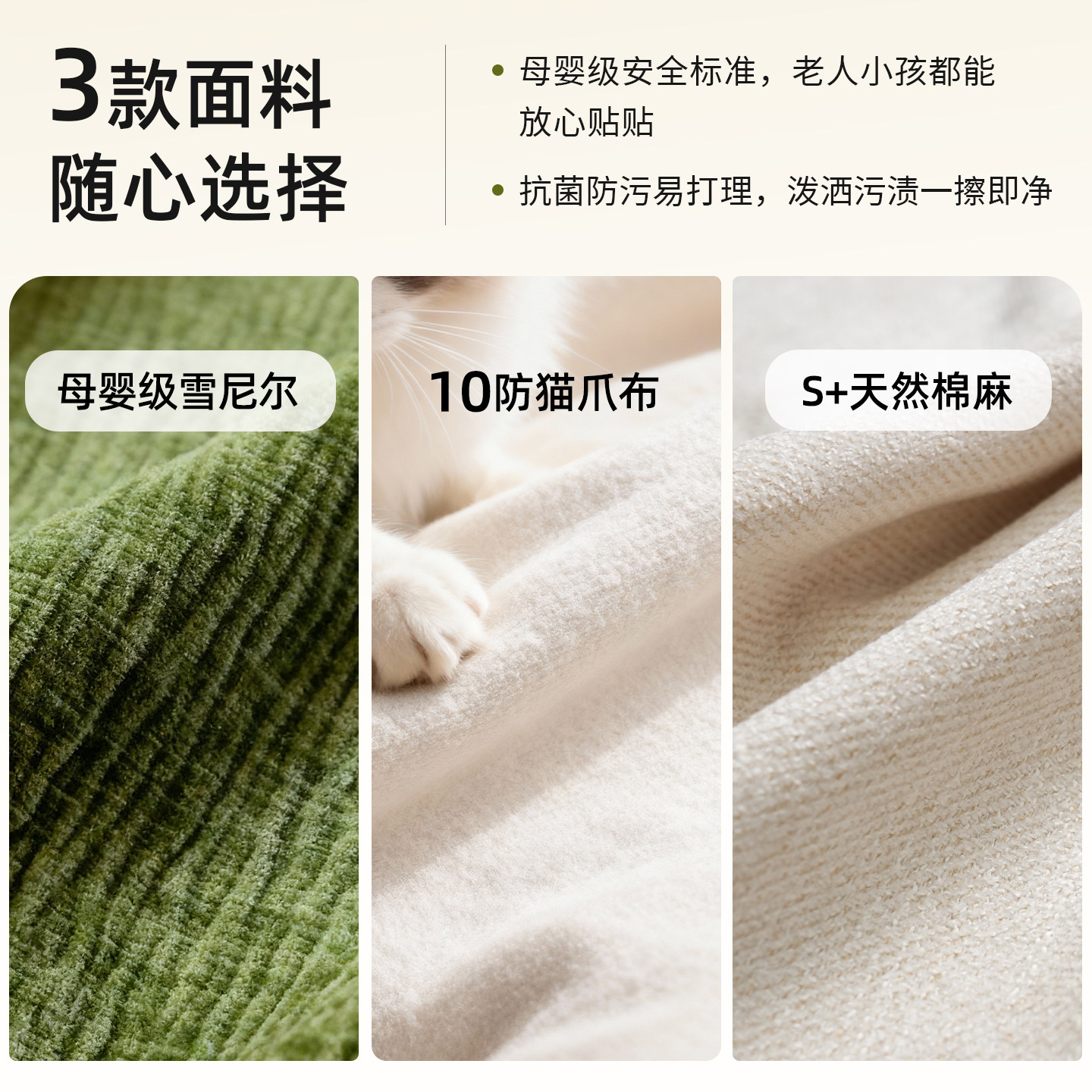 奶油风布艺沙发客厅2025新款小户型家用可拆洗三人位直排云朵沙发