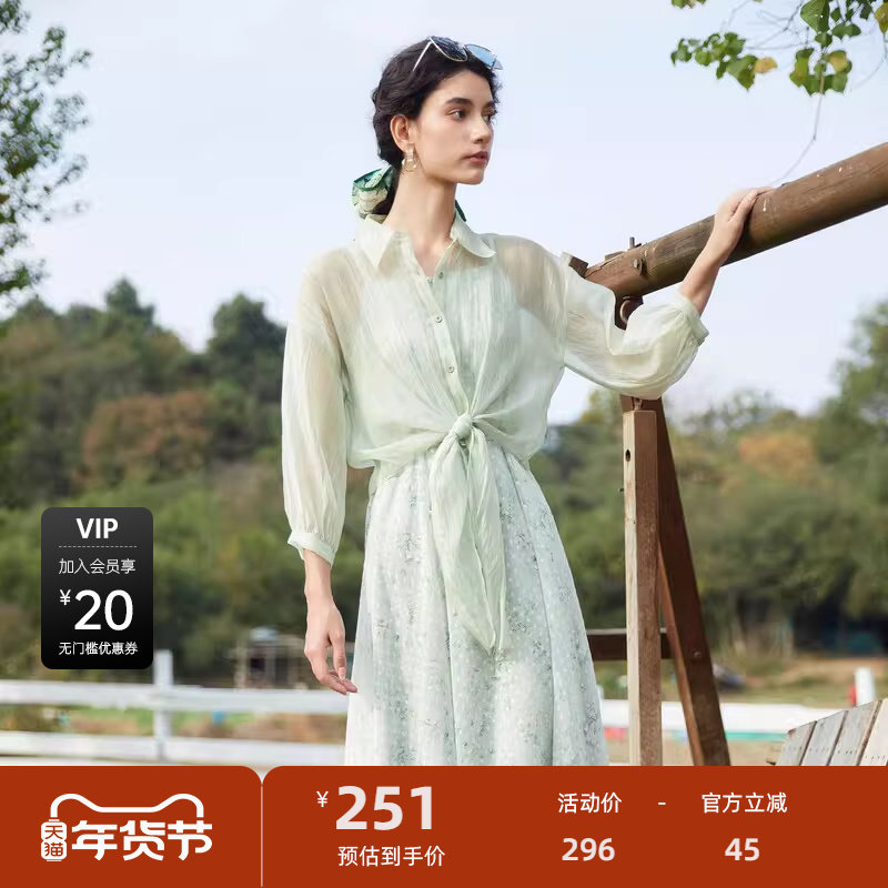 sdeer圣迪奥女装田园风清新波点碎花收腰连衣裙套装S24261403