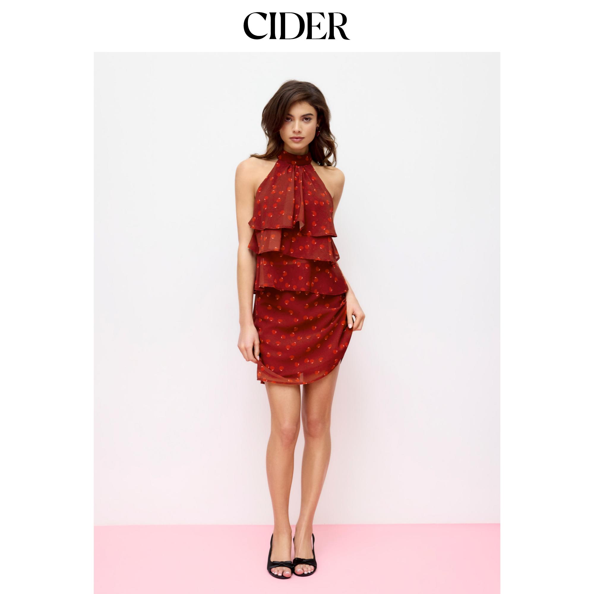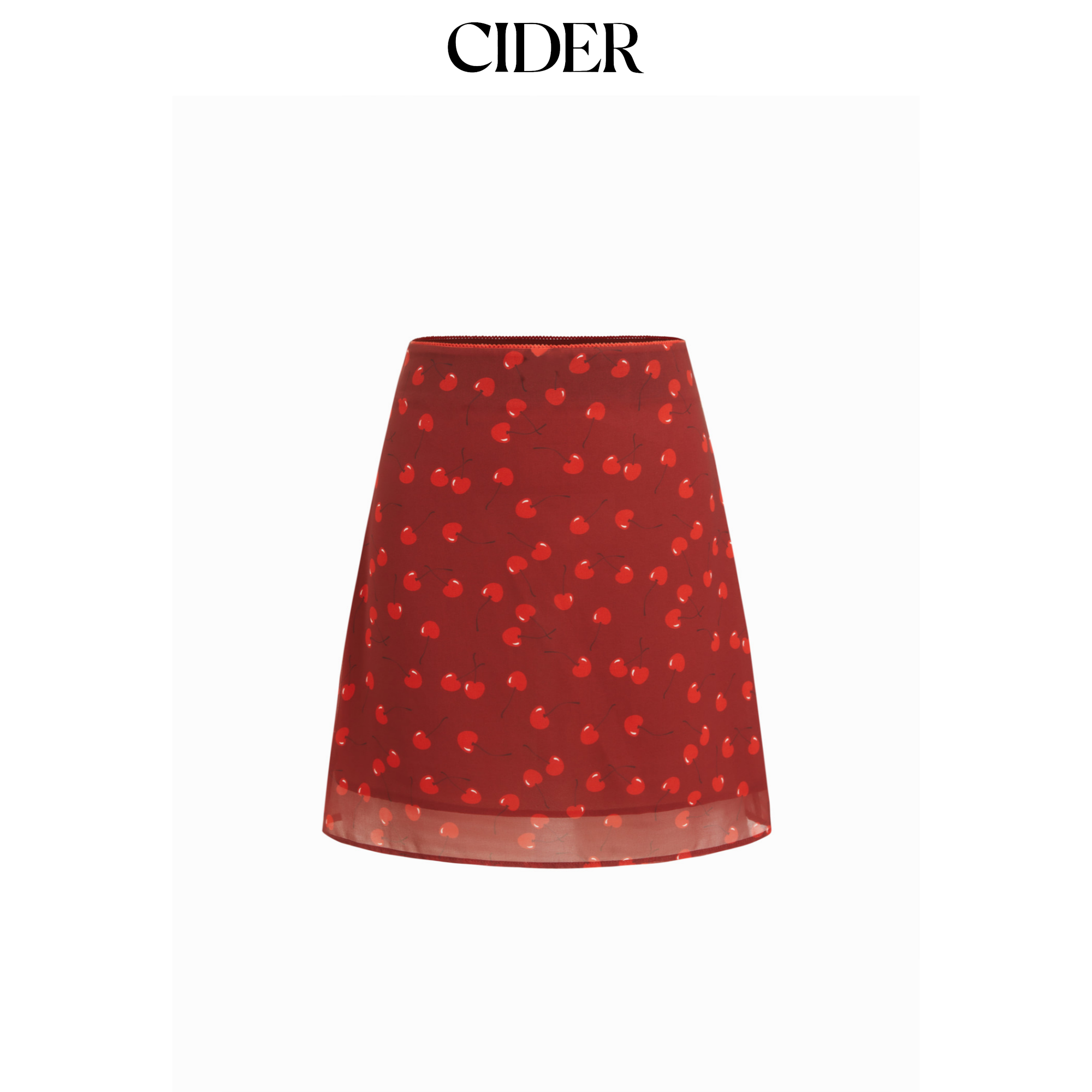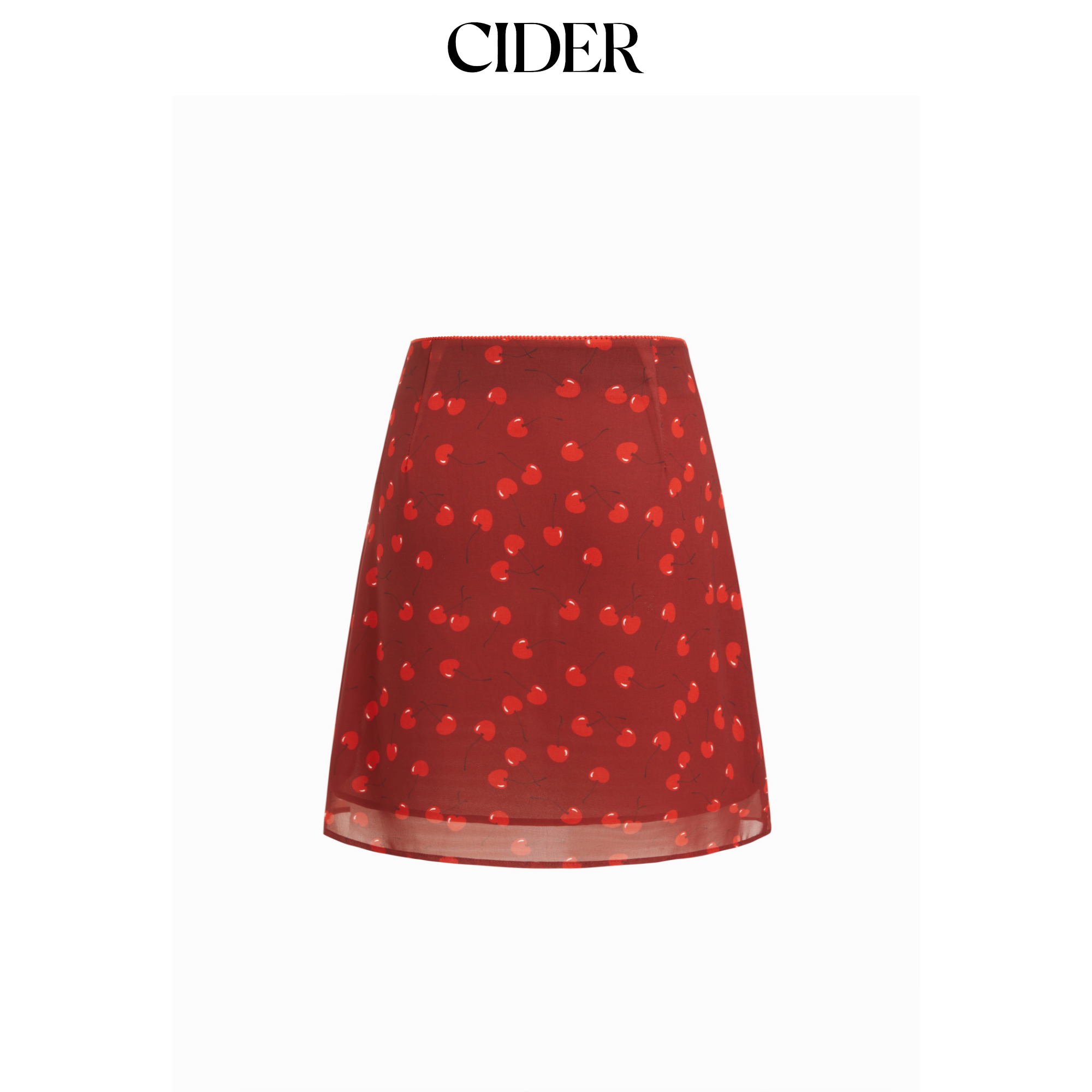 CIDER樱桃印花雪纺中腰A字中长半身裙115146748