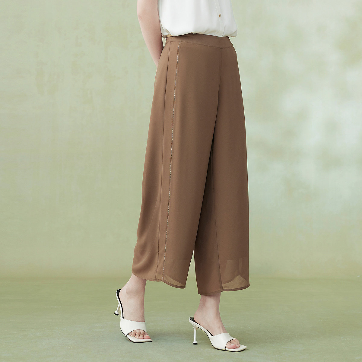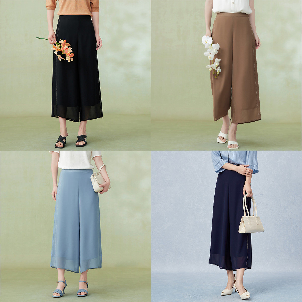 FINITY菲妮迪休闲裤2025年秋季新款宽松透气雪纺通勤九分阔腿裤女