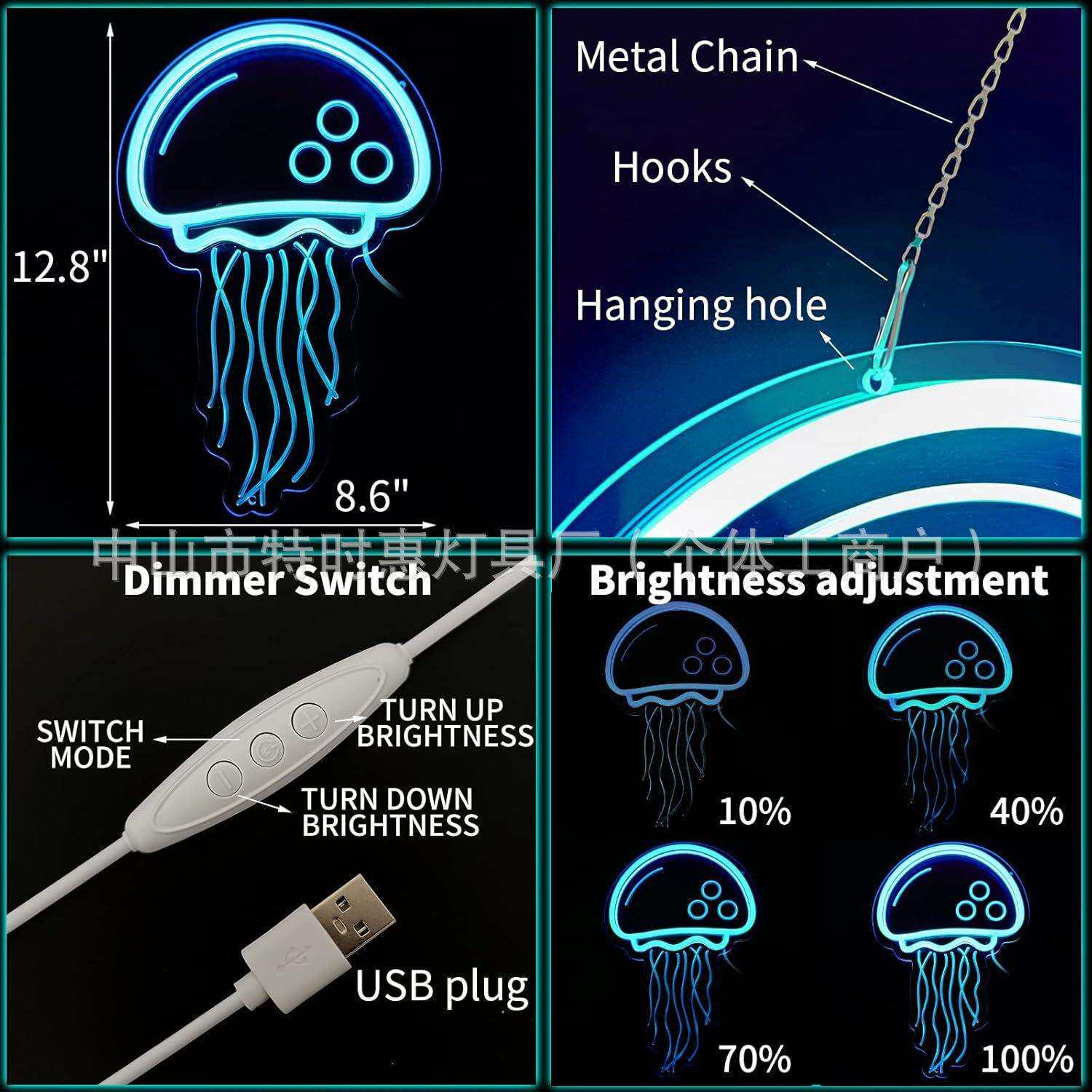 led霓虹灯跨境新品jellyfish水母水族馆儿童房派对装饰灯氛围灯