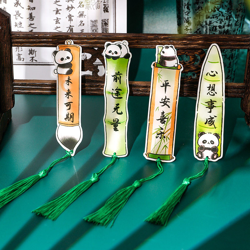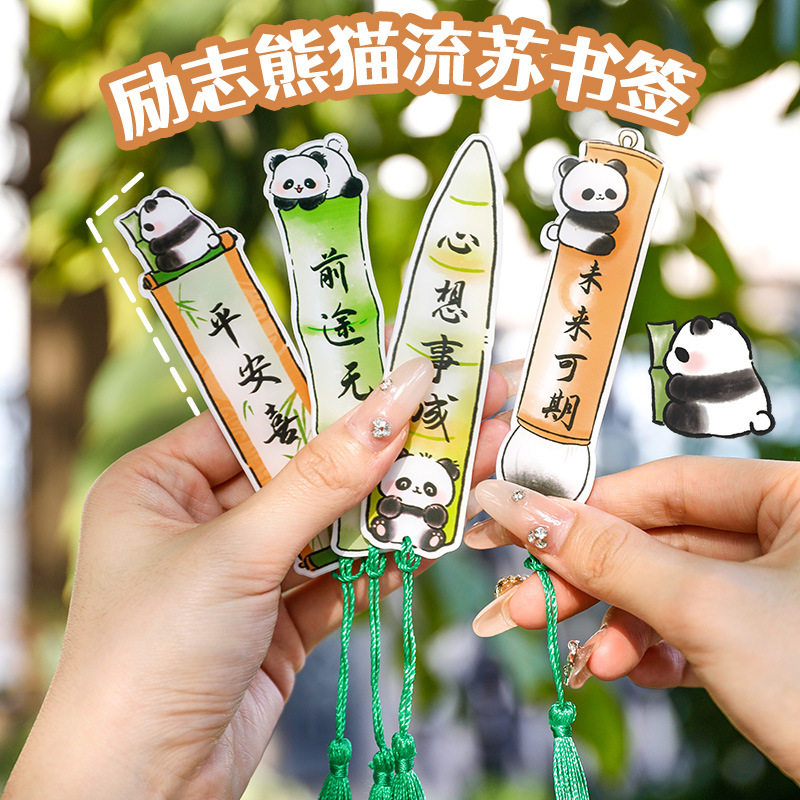 ins可爱熊猫流苏书签 学生高颜值文具小奖品亚克力励志文字书页夹