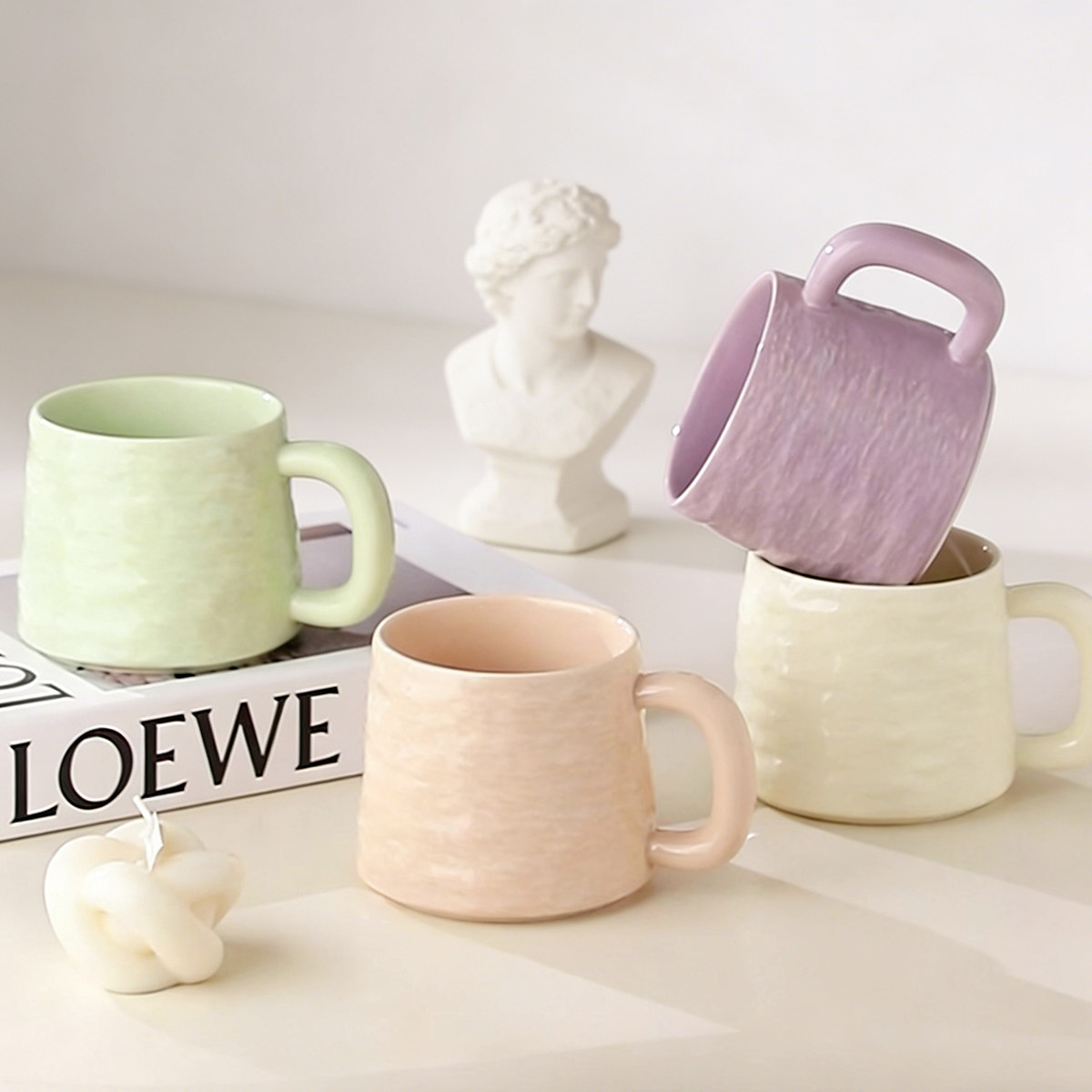 ins陶瓷杯高级感扭扭马克杯家用小众设计情侣咖啡杯女生喝水杯子