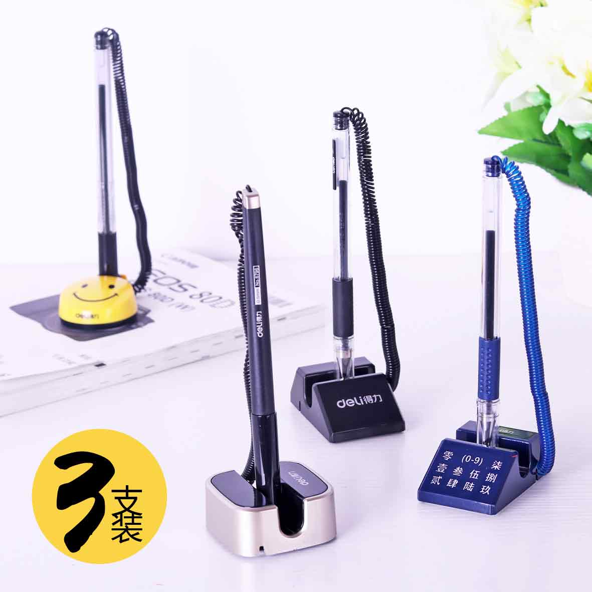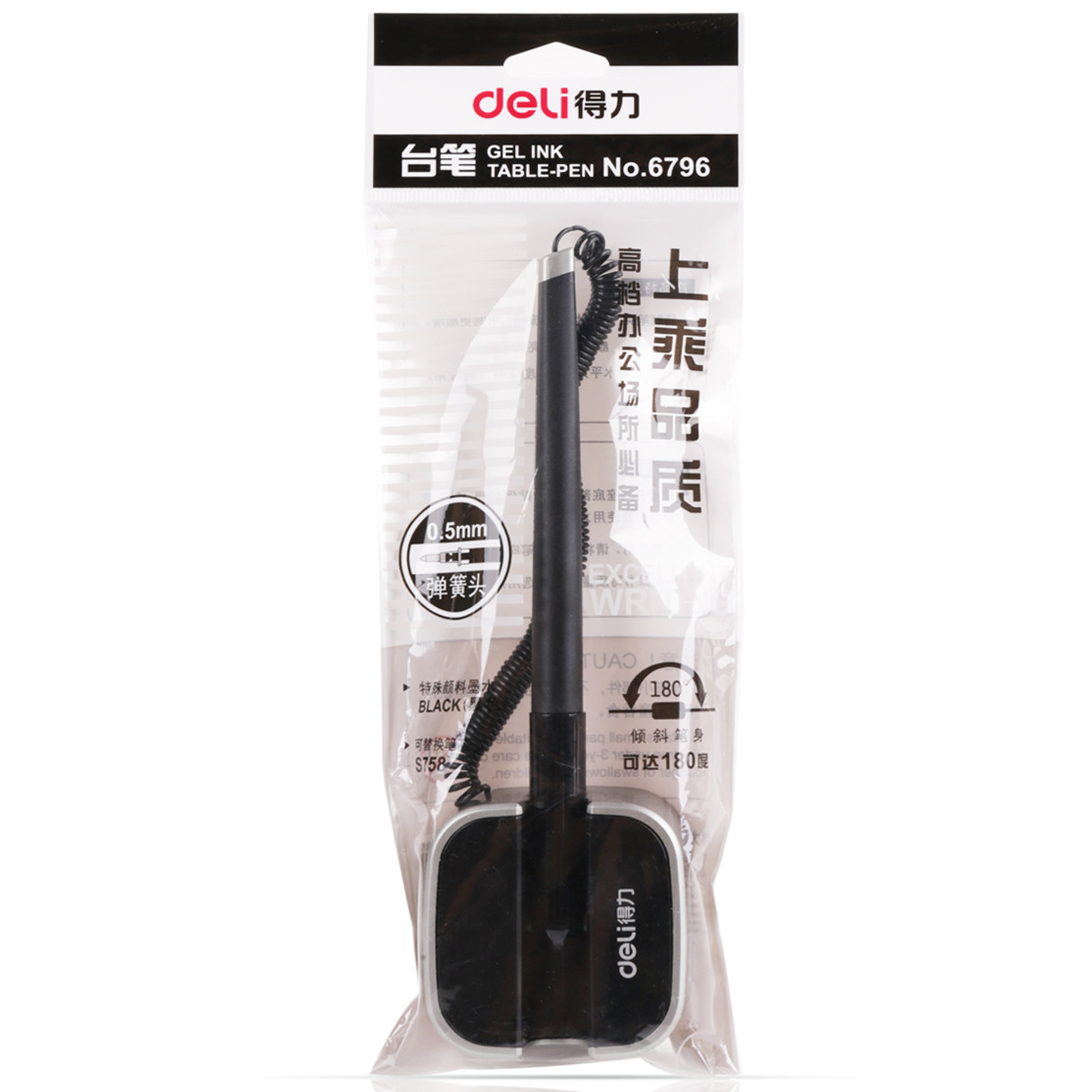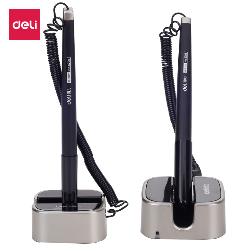 得力中性笔 台笔定制logo广告办公黑笔水笔固定笔银行前台桌笔吧台碳素笔签字笔粘贴桌面贴笔柜台笔0.5文具