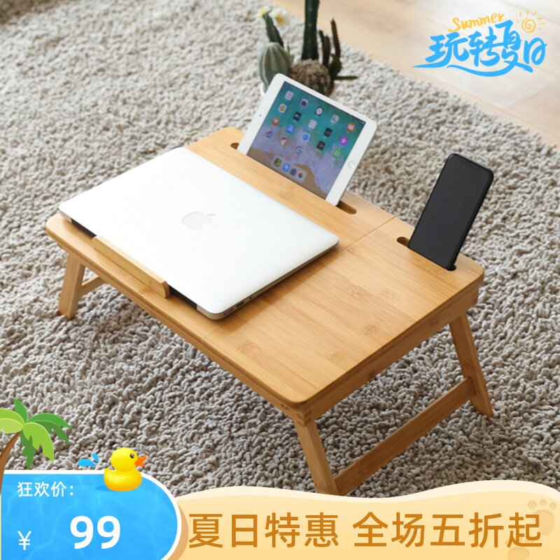 床上小桌子电脑桌折叠竹床上餐桌懒人桌加厚可升降实木宿舍学习桌