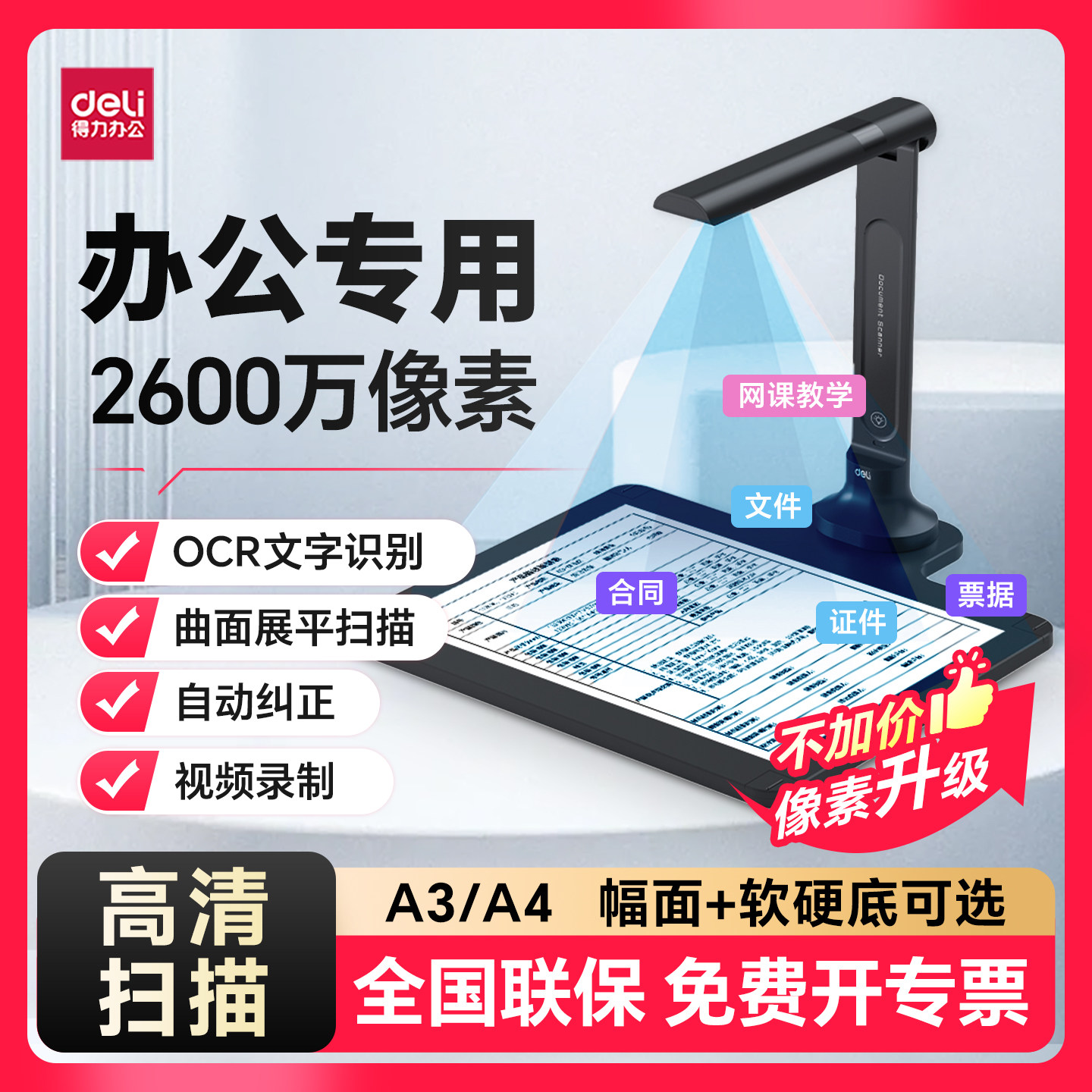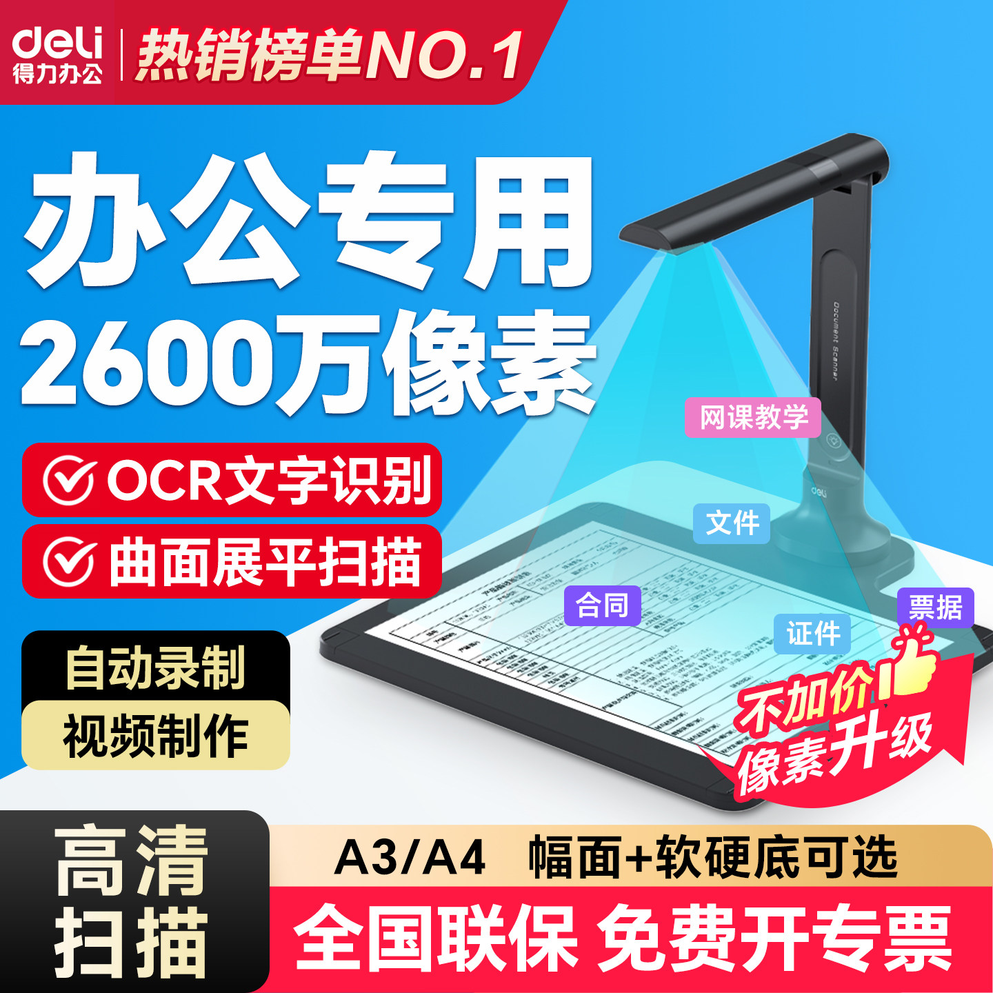 得力扫描仪高拍仪高清扫描仪高清专业办公连续快速扫描仪A3A4高清文件扫描神器投影仪教学展台书籍自动扫描机