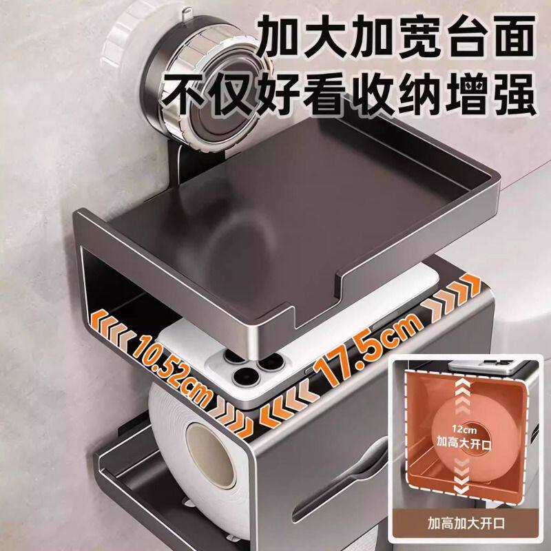卫生间纸巾盒免打孔壁挂式厕所卷纸架浴室抽纸盒手机置物架吸盘
