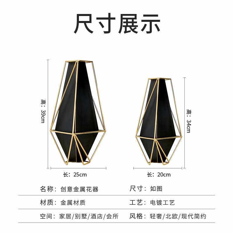 外贸欧式轻奢复古金属花瓶摆件高级感创意家居餐桌玄关工艺品