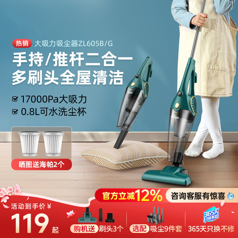 海尔吸尘器家用小型强大吸力手持轻音吸尘机吸猫毛宠物吸拖一体机