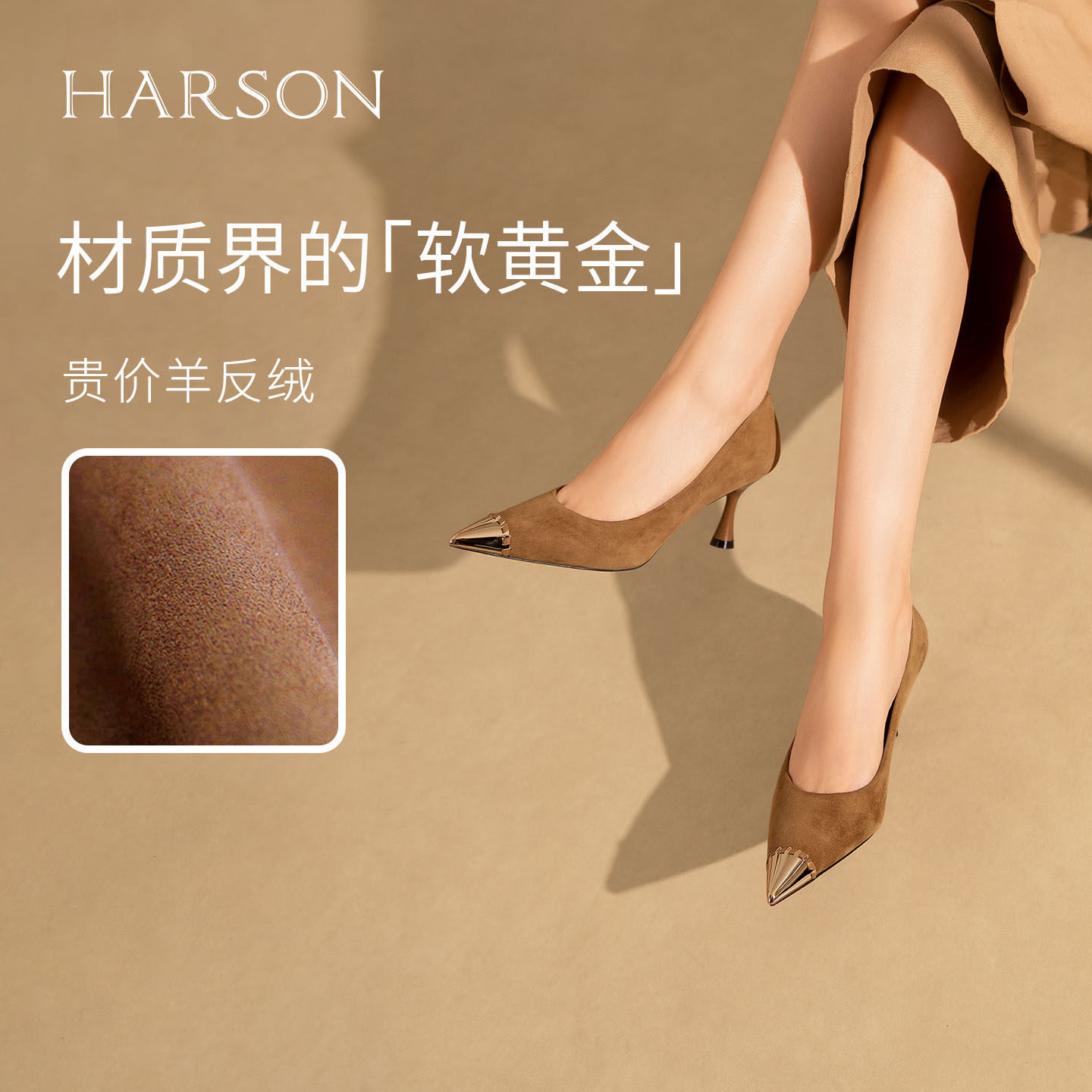 哈森/HARSON【金哨官】26春新款尖头绒面高跟鞋千金感女鞋不累脚
