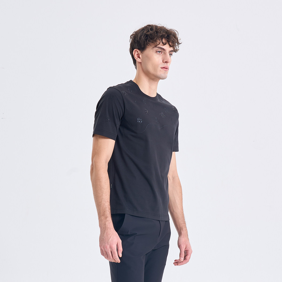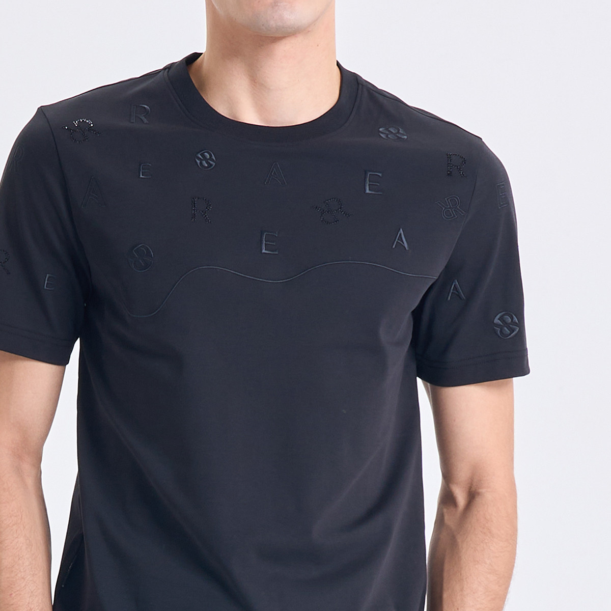 RARE威雅男装 2026夏季新款黑色圆领T恤字母刺绣烫钻男士短袖T恤