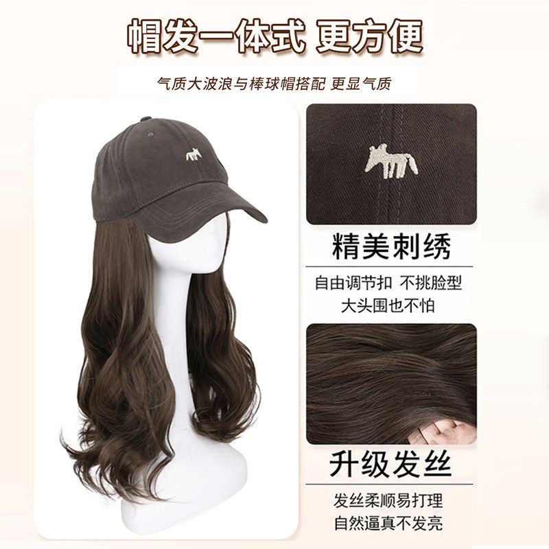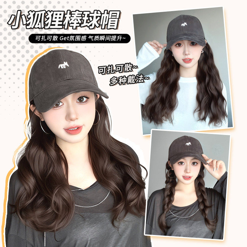 假发帽子一体2025秋冬新款自然减龄小狐狸棒球鸭舌帽假发女全头套