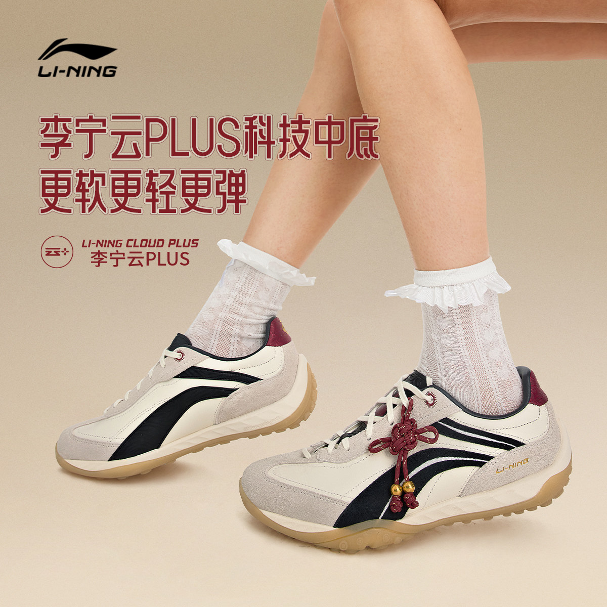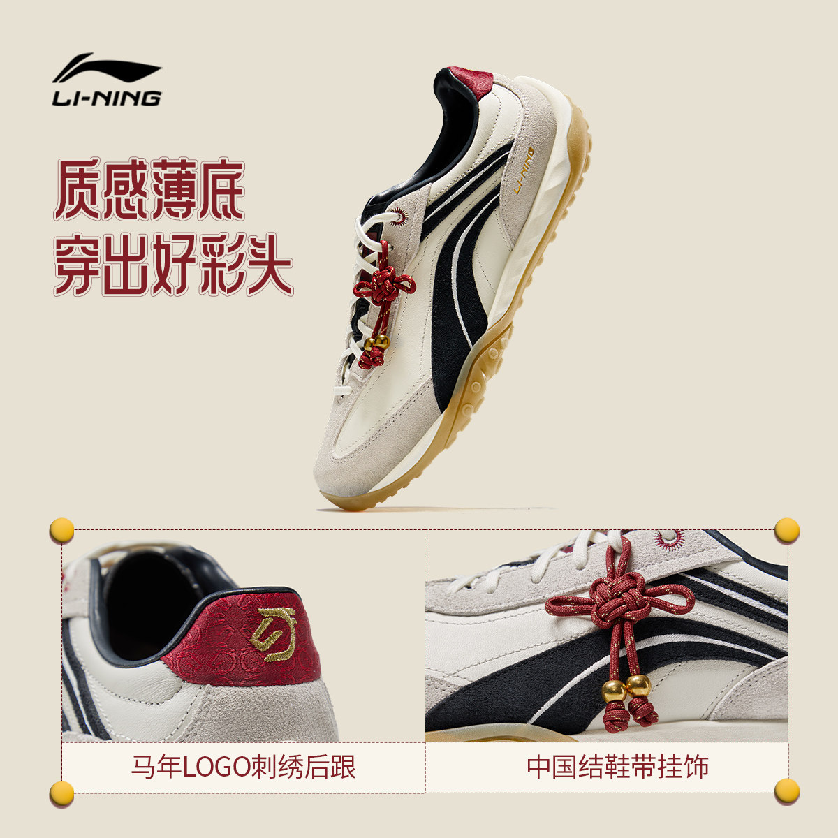 李宁心流丨休闲鞋男女情侣德训鞋马年本命年红色复古薄底运动鞋子