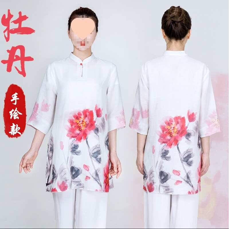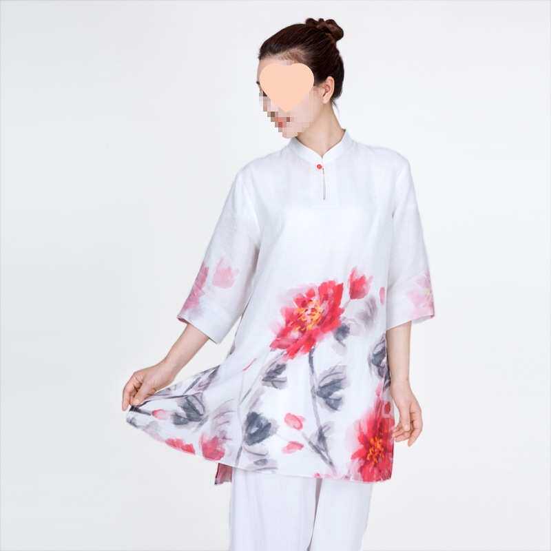 小和山太极服新款女棉麻苎麻太极拳练功服夏季服装飘逸休闲中长款