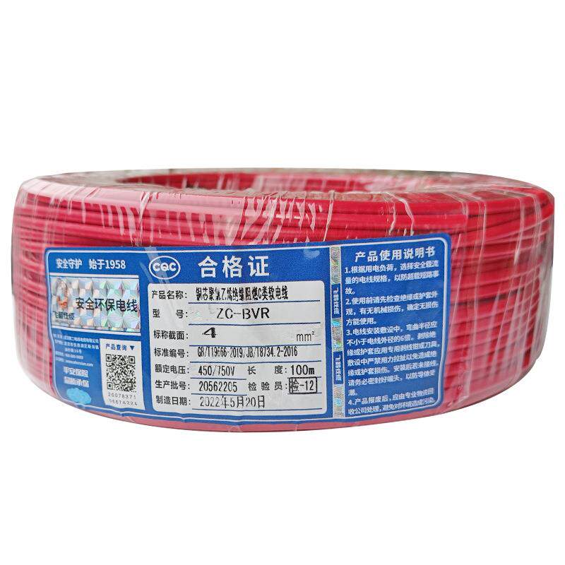 新款武汉二厂电线国标铜丝阻燃BVR4平方多股软铜芯火零地家装