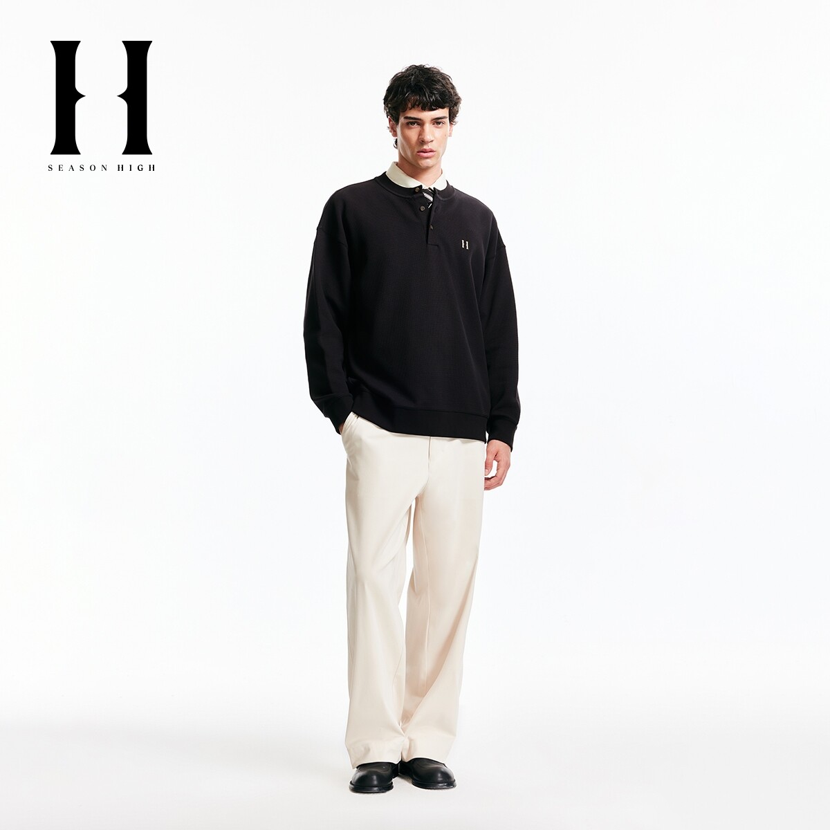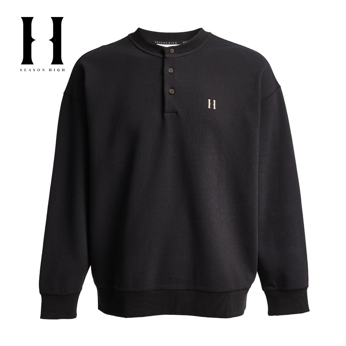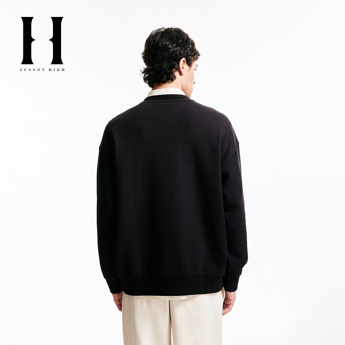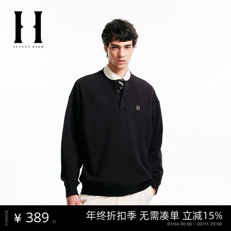 SEASON HIGH秋冬男装卫衣舒适百搭精致刺绣华夫格潮宽松长袖上衣