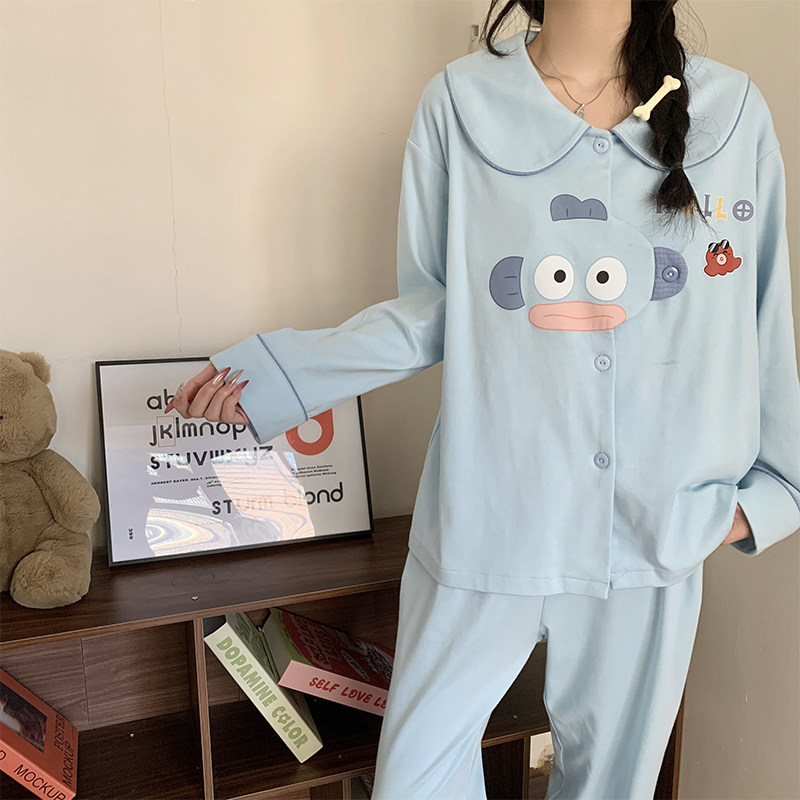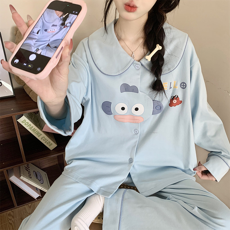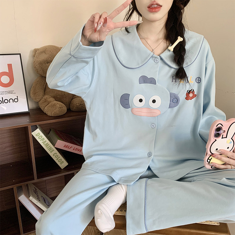 睡衣女款春夏季2026新款带胸垫棉绸长袖卡通小丑鱼大码女士家居服