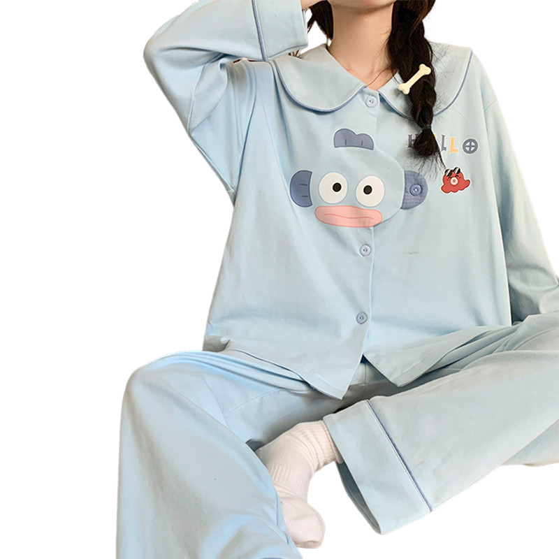 安比斯情侣睡衣舒适纯棉秋季女长袖男女同款休闲家居服套装可出门