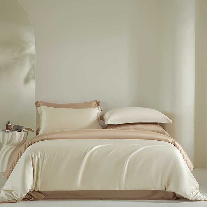 2026新款A类100支兰精天丝四件套简约拼色床单套件床笠奢华套件