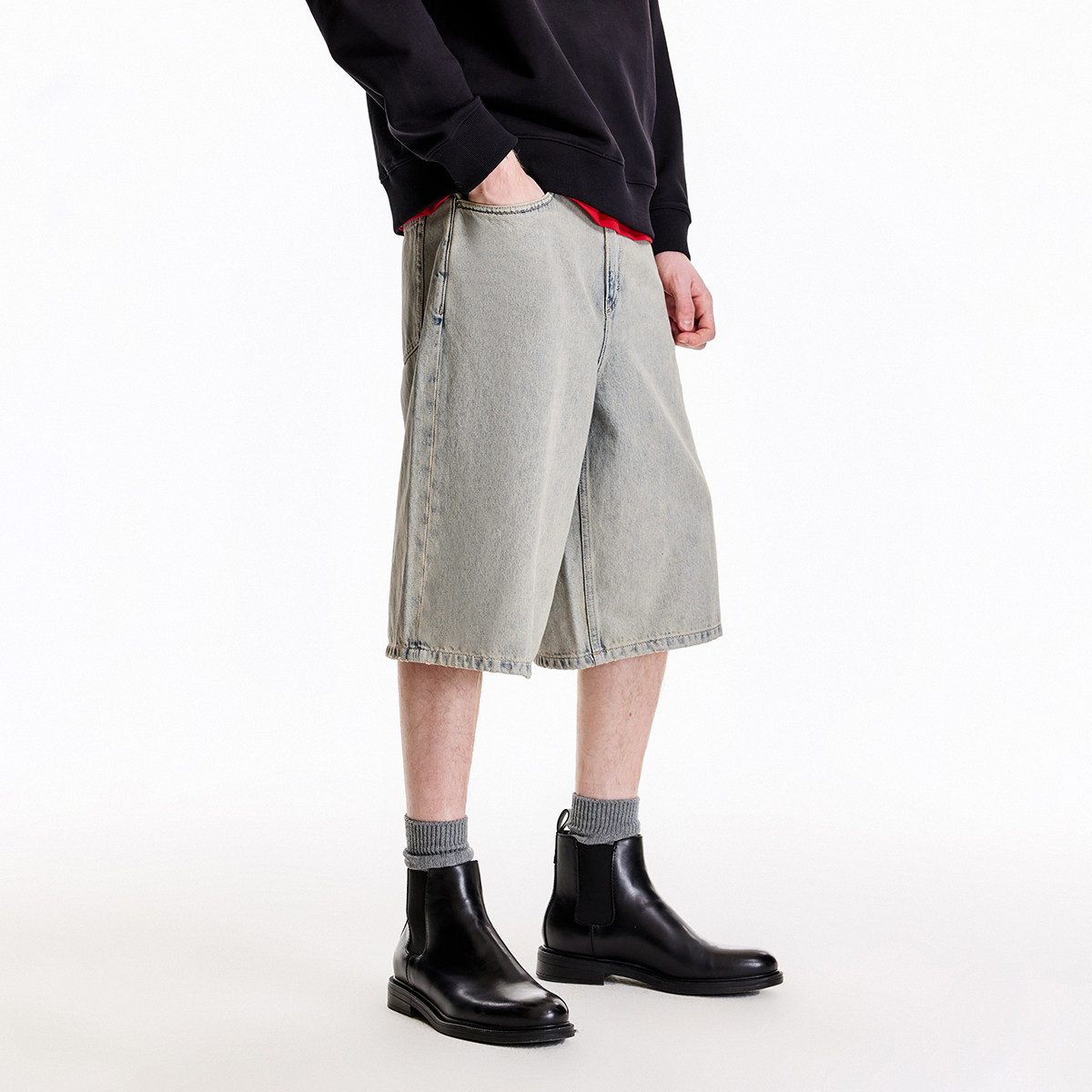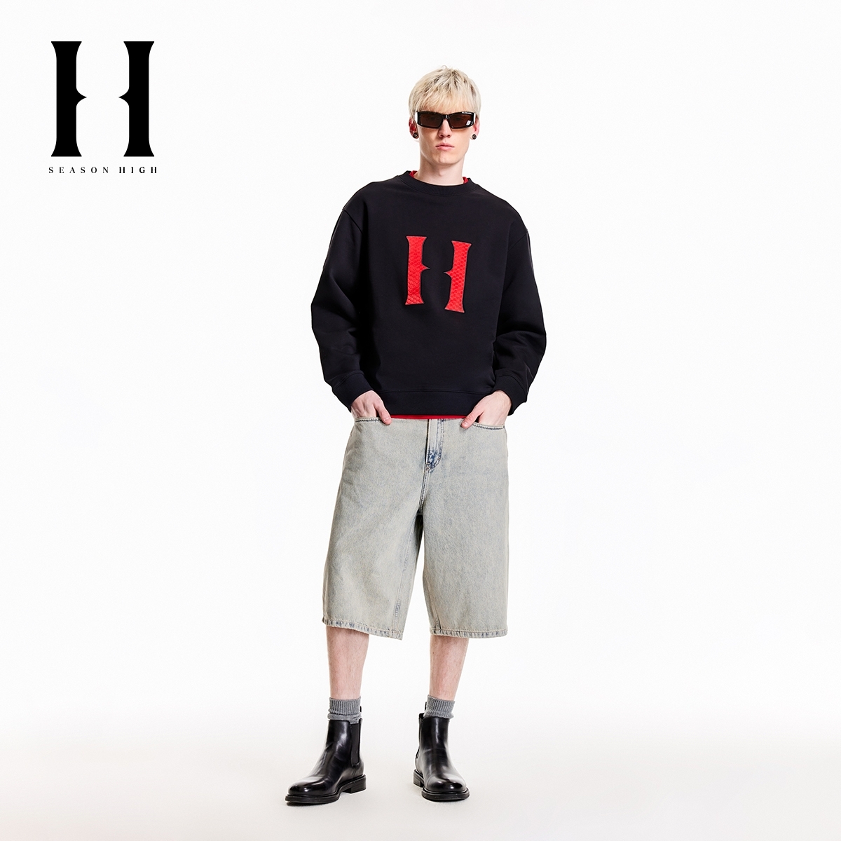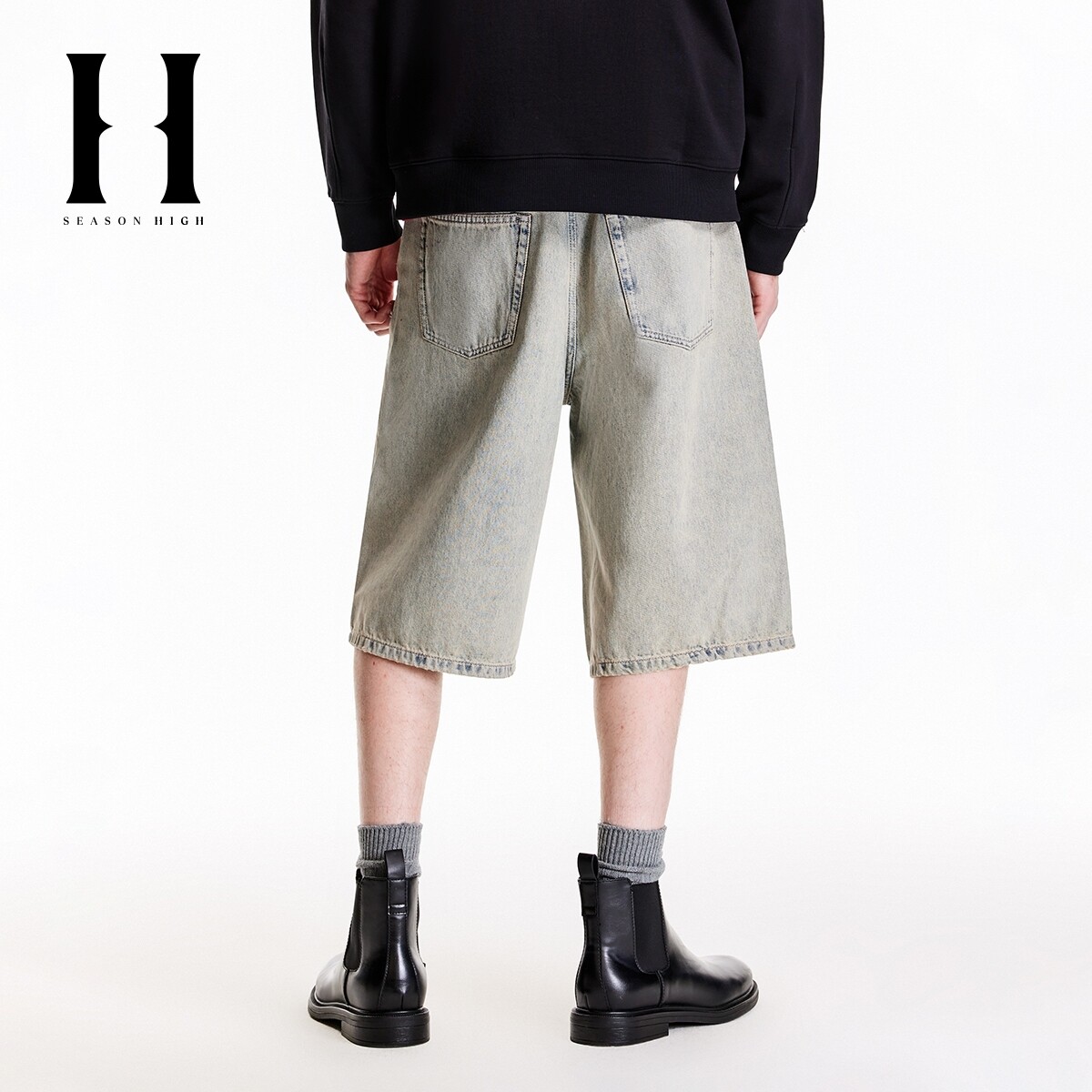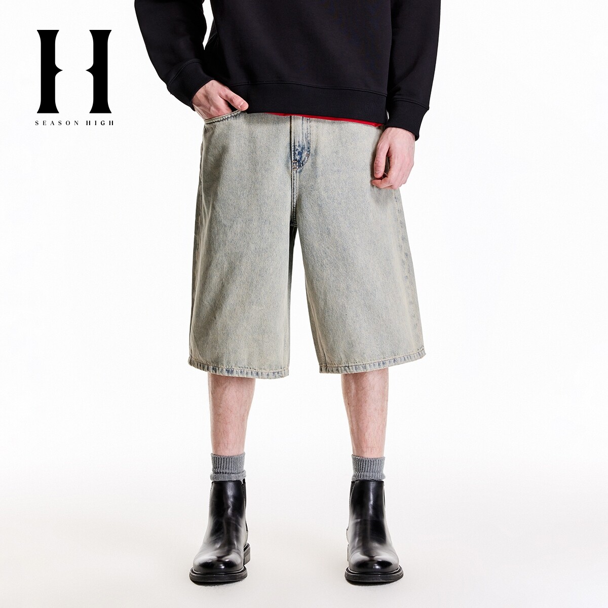 SEASON HIGH秋季时尚出街潮流纯棉裤子简约风牛仔裤牛仔短裤男裤