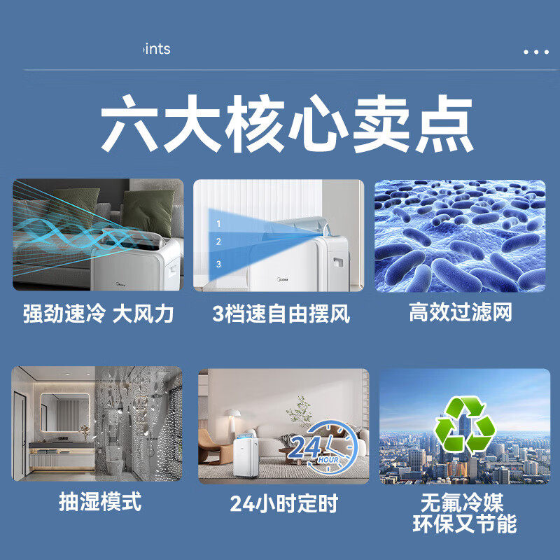 浦力适移动手提空调厨房户外冷风扇书房卧室除湿抑菌除臭便携移动