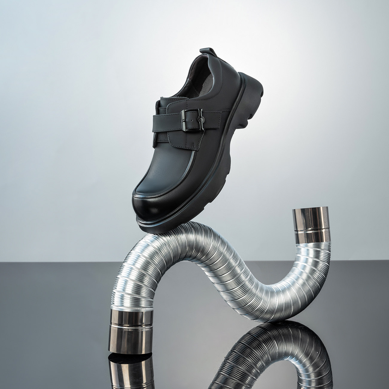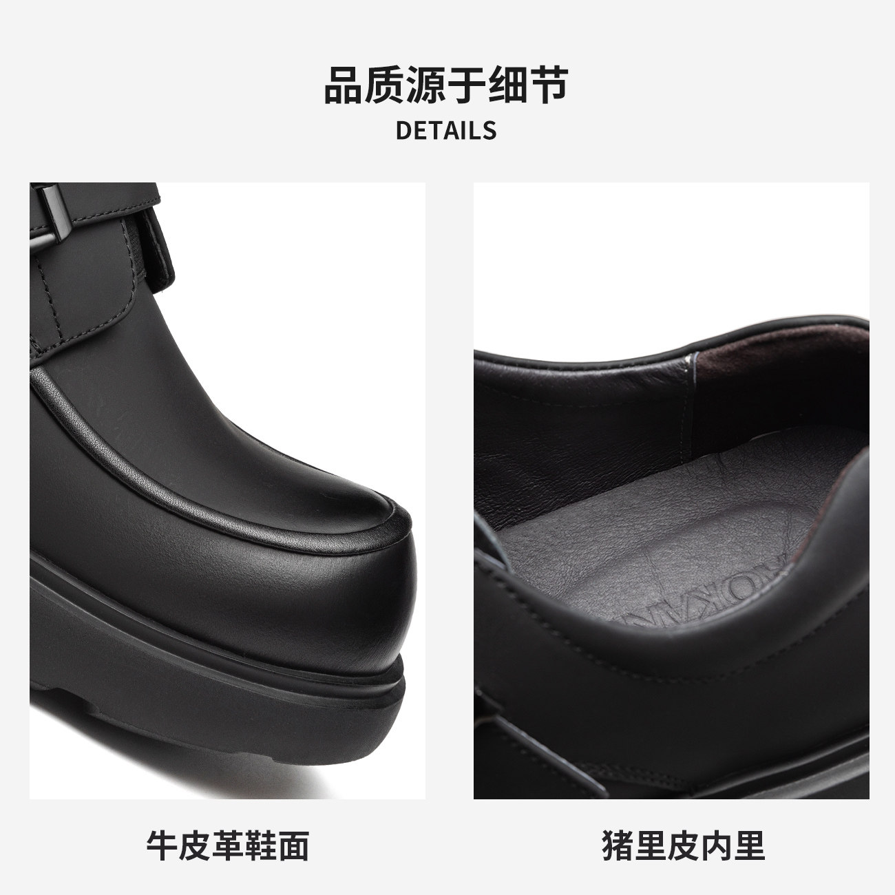 【小牛皮】青润chioryn袋鼠鞋男黑色真皮增高厚底休闲通勤风皮鞋