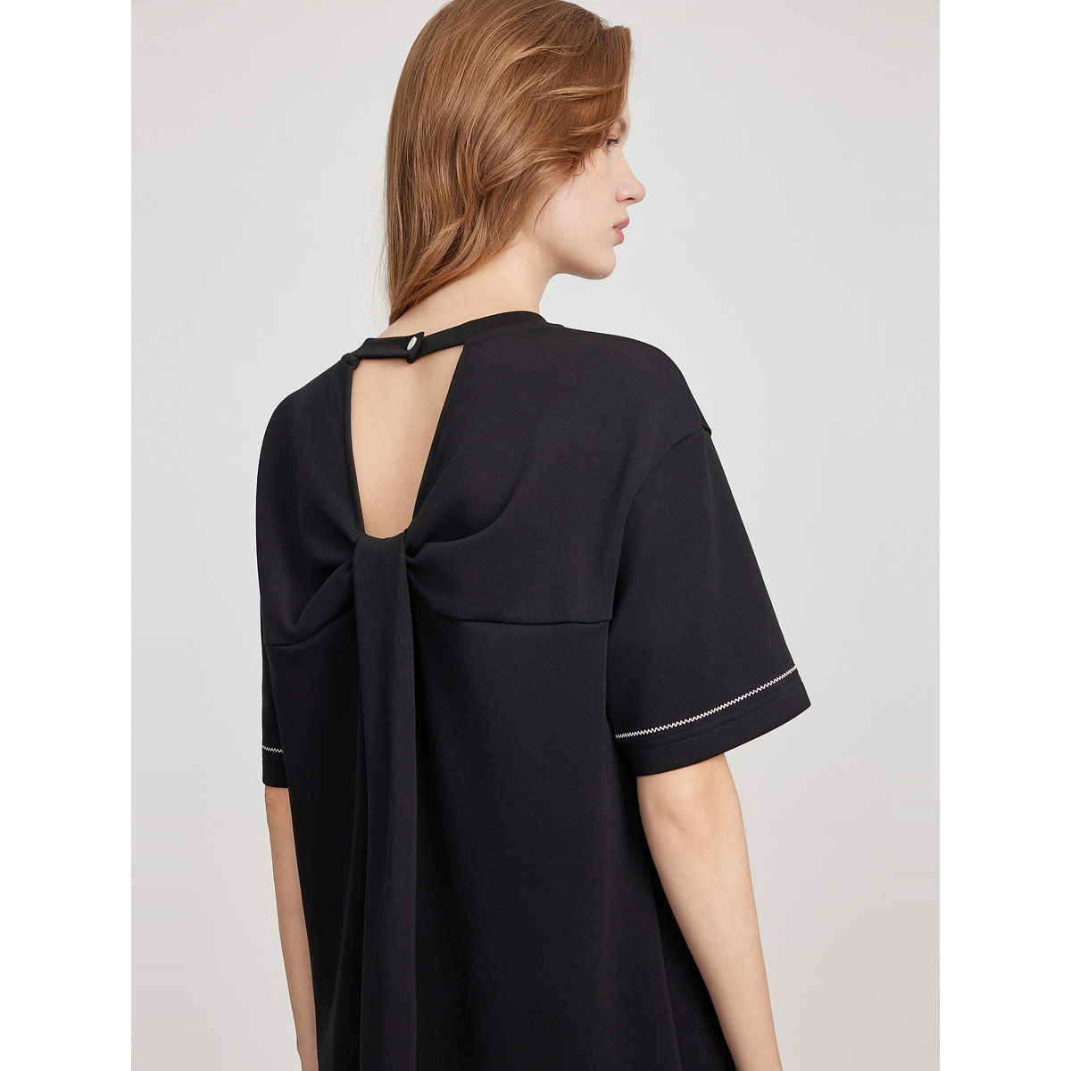 COCOBELLA简约气质黑色收腰极简风连衣裙女优雅短袖长裙FR3033-2
